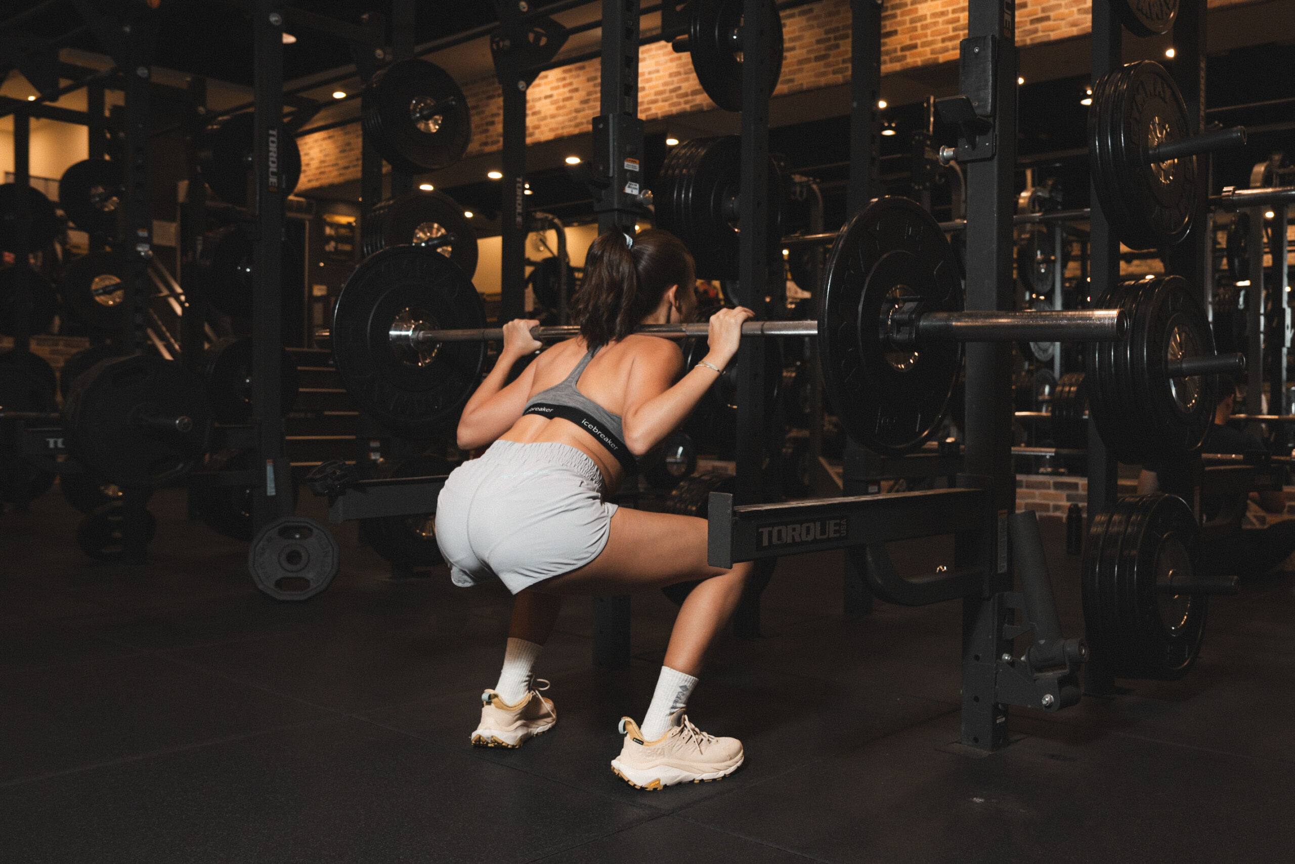 - 髖部後推:開始下蹲時,先將髖部向後推,好像要坐到一把椅子上,這樣能有效啟動臀部和腿部肌群,而不是讓膝蓋過早彎曲導致壓力集中在膝蓋上。