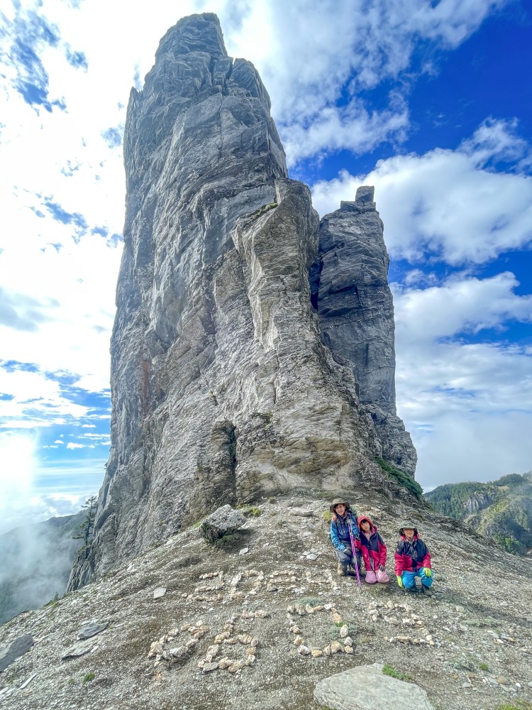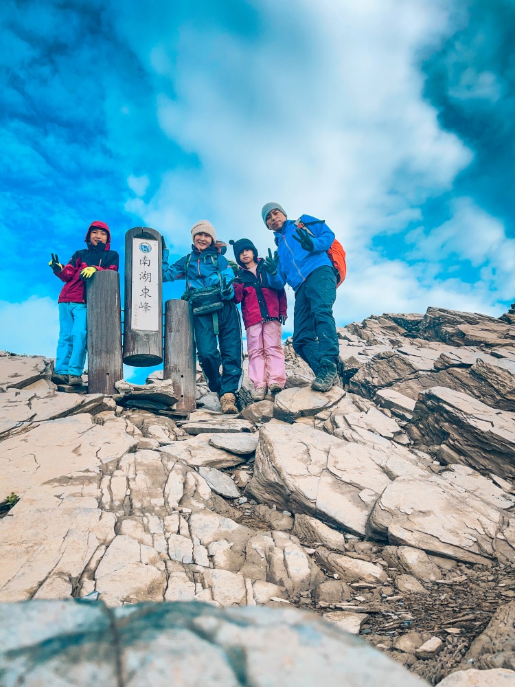 說到難以忘記的登山回憶,兩人分享了兩個故事。其中一次前往南湖大山的旅程成為一家人難忘的記憶。去程一切順利,但從第三天開始氣候急劇變化,霧雨籠罩,還夾帶著猛烈的狂風。回程五岩峰的風勢強勁得幾乎要把人吹倒,孩子們的身體在風中晃動,夫妻倆的心揪得很緊,深怕一不小心就會出意外。「我得牢牢抓著他們的手,才能讓自己放心。」小庭回憶起那個風中步步為營的情景,心裡至今還餘悸猶存。