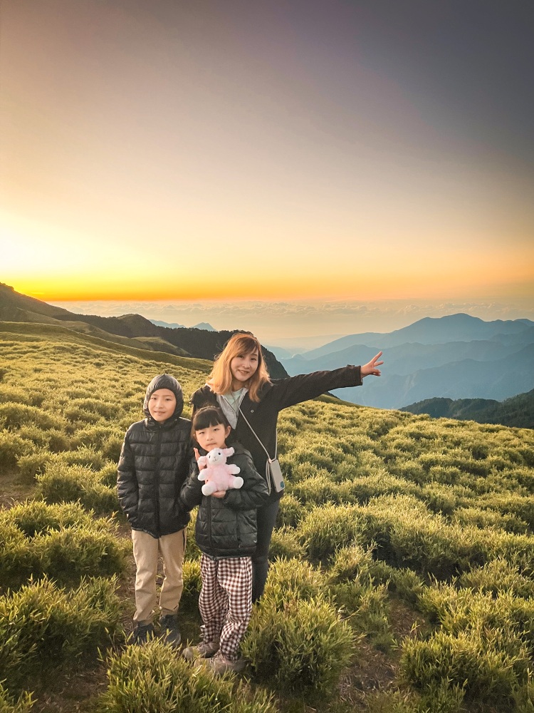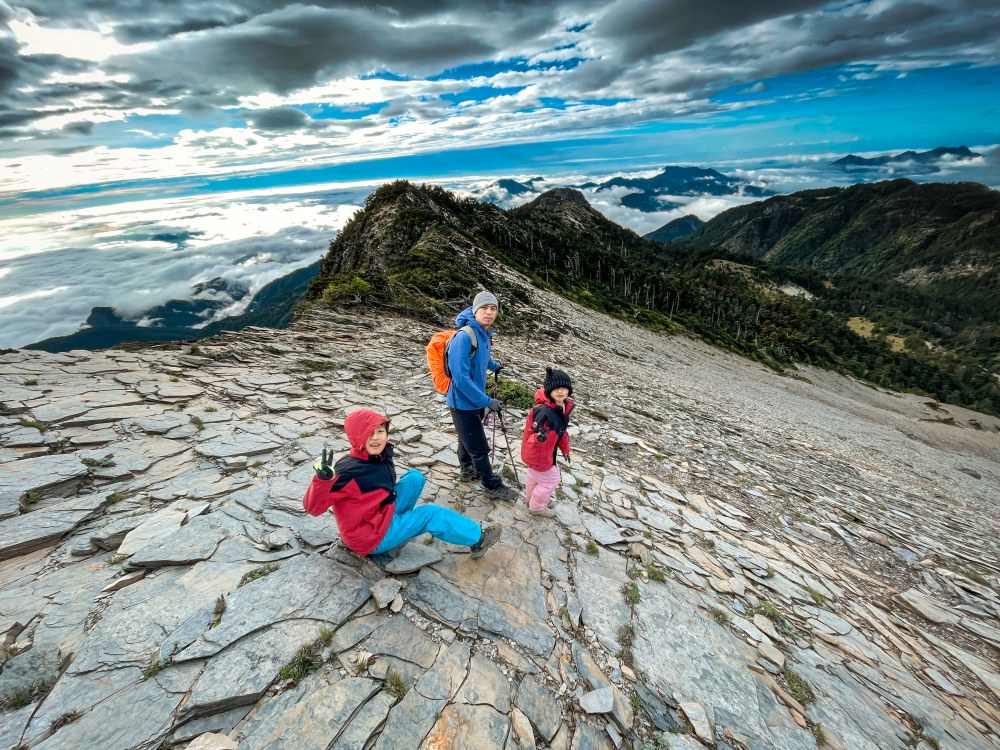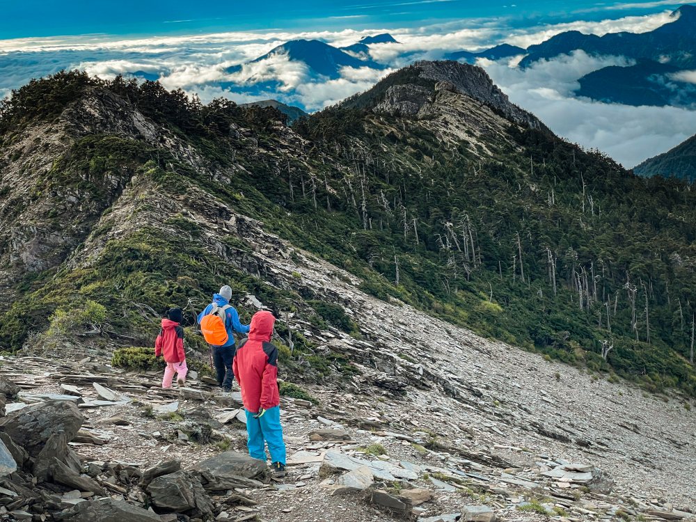 出乎意料的是,兩個孩子沒有太多抱怨。山路艱辛,沿途偶遇的山友看到年幼的小音和楷楷,紛紛掏出糖果、餅乾,鼓勵孩子繼續往上爬。「當時孩子似乎覺得這是一場冒險,也許年紀小還不懂得畏懼和疲倦,只知道跟著我們一步步走。」小庭補充道。