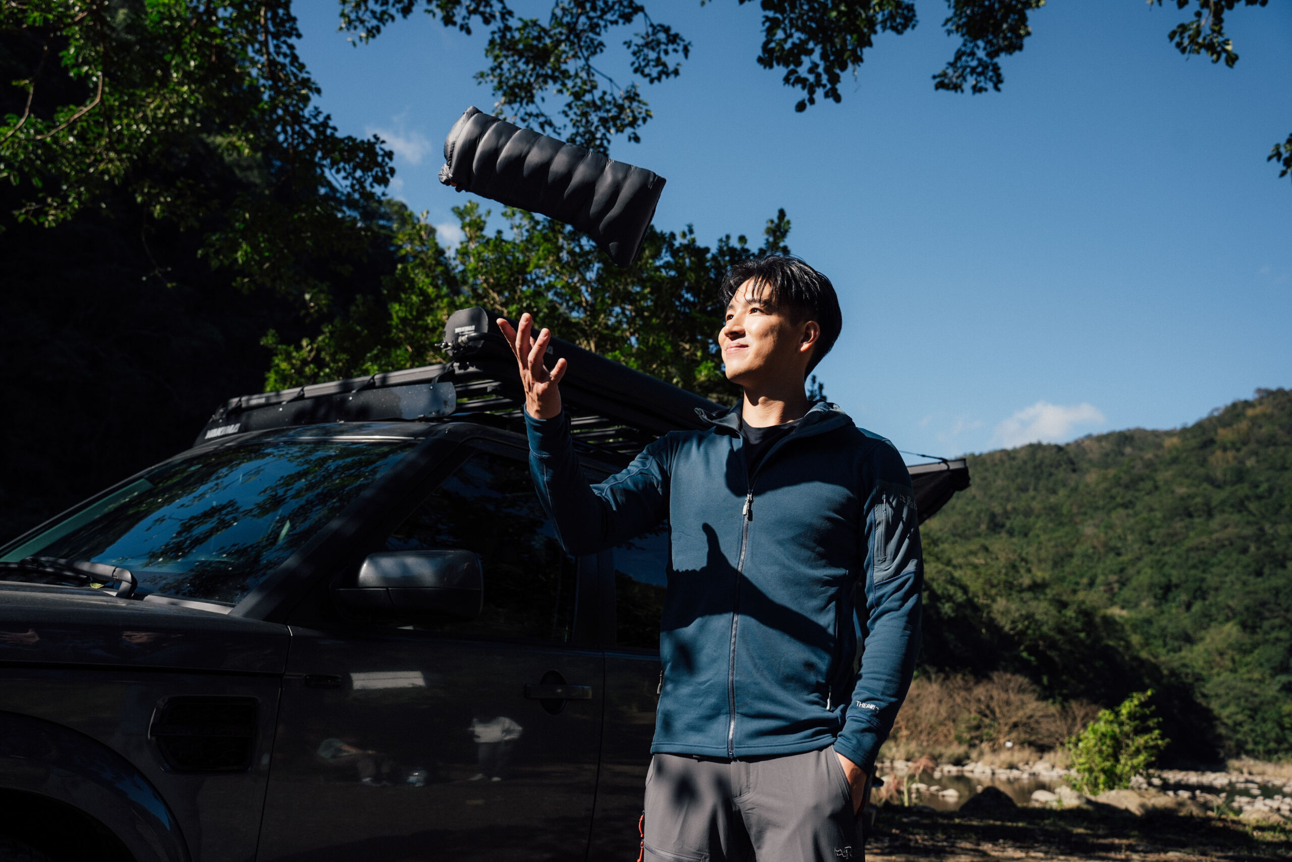 一轉眼,2024 年已來到最後一個月份,今日早晨頂著陣陣寒意,我們來到位於新北坪林的茄苳潭,Louie 將愛駒 Land Rover Discovey 4 停泊在河畔,邊將露營裝備從車廂拿下,邊與我們分享在澳洲生活的日子:「如果要說比較頻繁地從事戶外活動,應該是我在澳洲的時候,那時候我是划船選手,除了在湖邊訓練和比賽,也常常就地過夜。」開始接觸露營這種生活方式是在澳洲,而年少輕狂的 Louie,有次在墨爾本北部的 Nagambie 湖比賽,一樣選擇就地夜宿,但夜晚的低溫讓他措手不及,甚至冷到需要拿裝船的袋子當作臨時睡袋,克難地熬到天亮:「那次的經驗真的讓我印象深刻,也學到在戶外活動時,保暖裝備的重要性。」Louie 接著補充,有了冷過一次的經驗後,Louie 開始重新審視對於戶外裝備的選擇,進而影響了他日後的車泊露營的準備,他也認知到合適的衣著與睡眠系統的選擇,不僅是為了抵禦戶外多變的天候,還能讓戶外活動的更為安全與舒適。