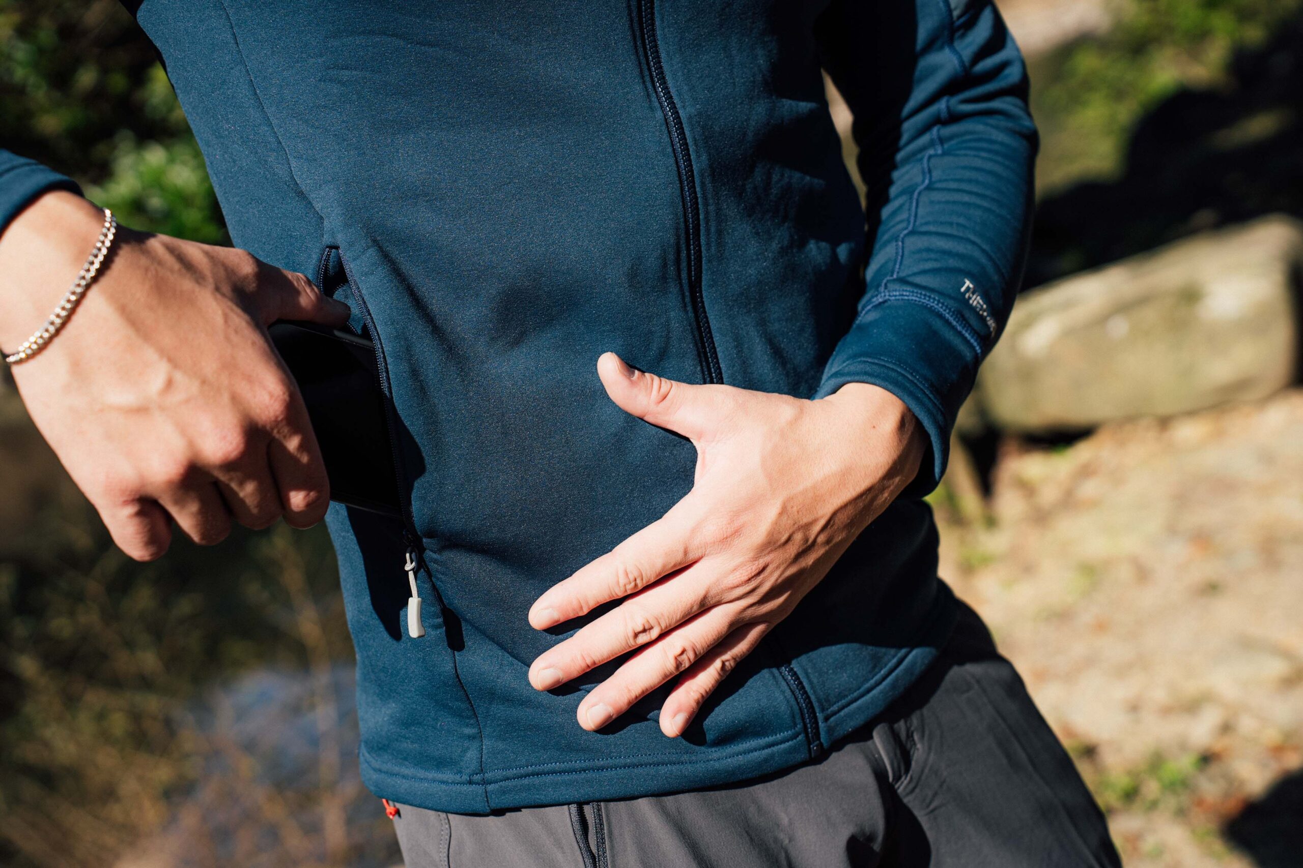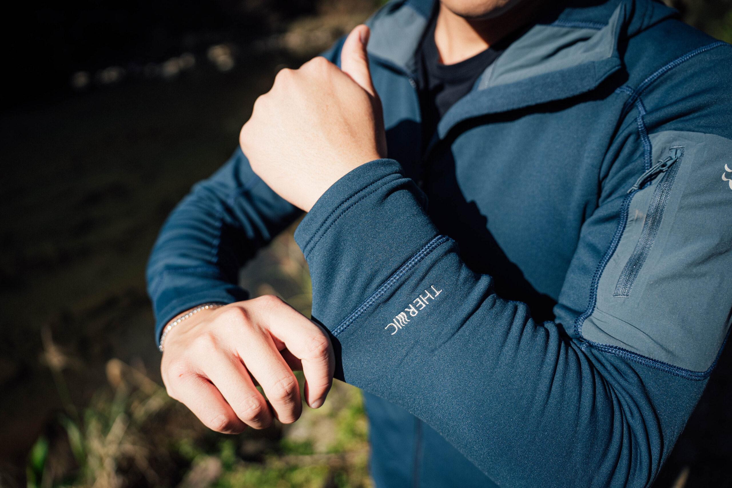▲ 採用 Thermic™ Stretch Pro 抓絨面料,耐用及快排機能卓越,更擁有絕佳彈性;手臂口袋除增添撞色視覺感外,更能放置重要小物。