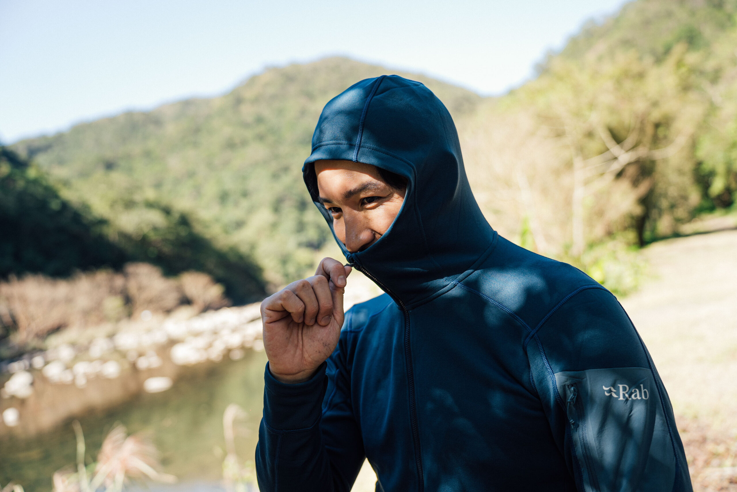 此外,今日穿著 Rab Modulus Hoody 快乾排汗彈性保暖連帽外套,從事許多活動度較大的工作,如撿柴、生火、烹飪的 Louie 接著說:「我特別喜歡這件刷毛外套,它貼合身形,活動時完全不受限制,讓我能更自在地專注於眼前工事,而且他很修身、設計也好看,就算平常穿在城市要去健身房運動也不會很突兀。」這款外套在溫度調節上的表現出色,既不會讓人過熱,又能在冷風中保持身體溫暖。