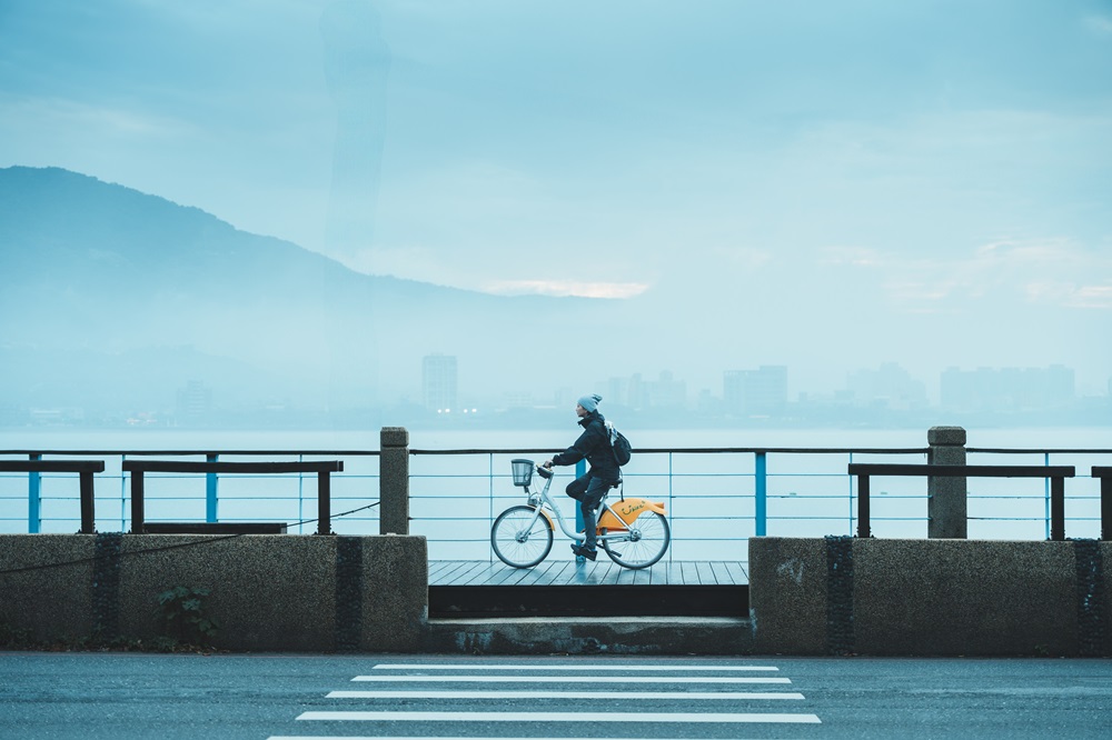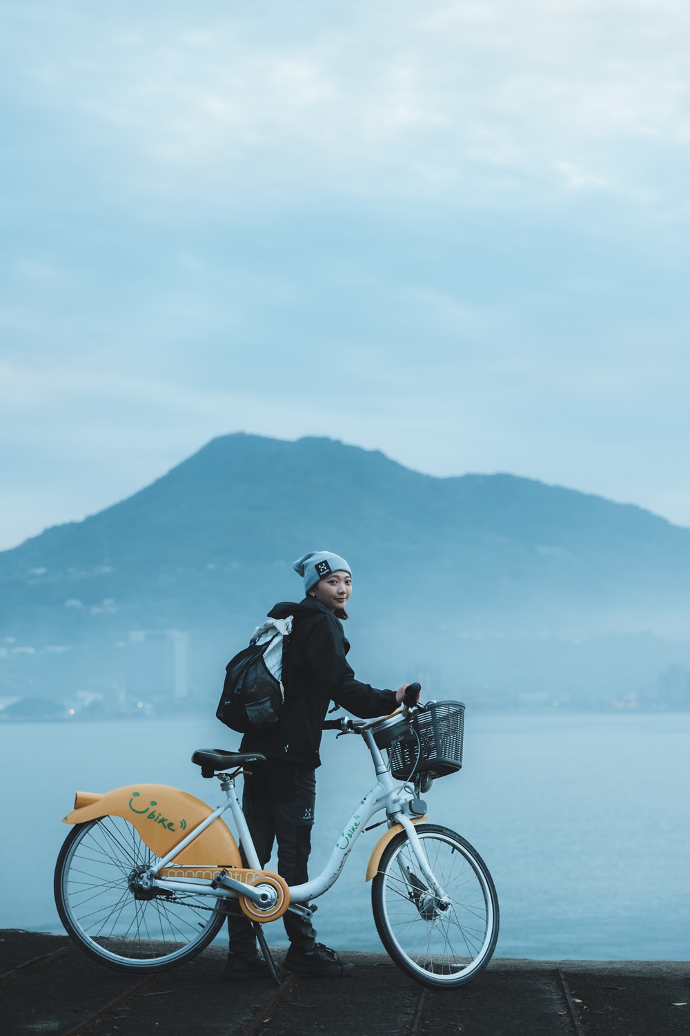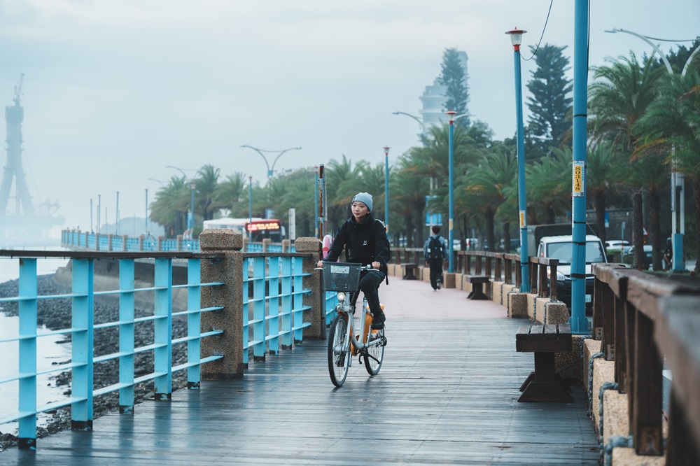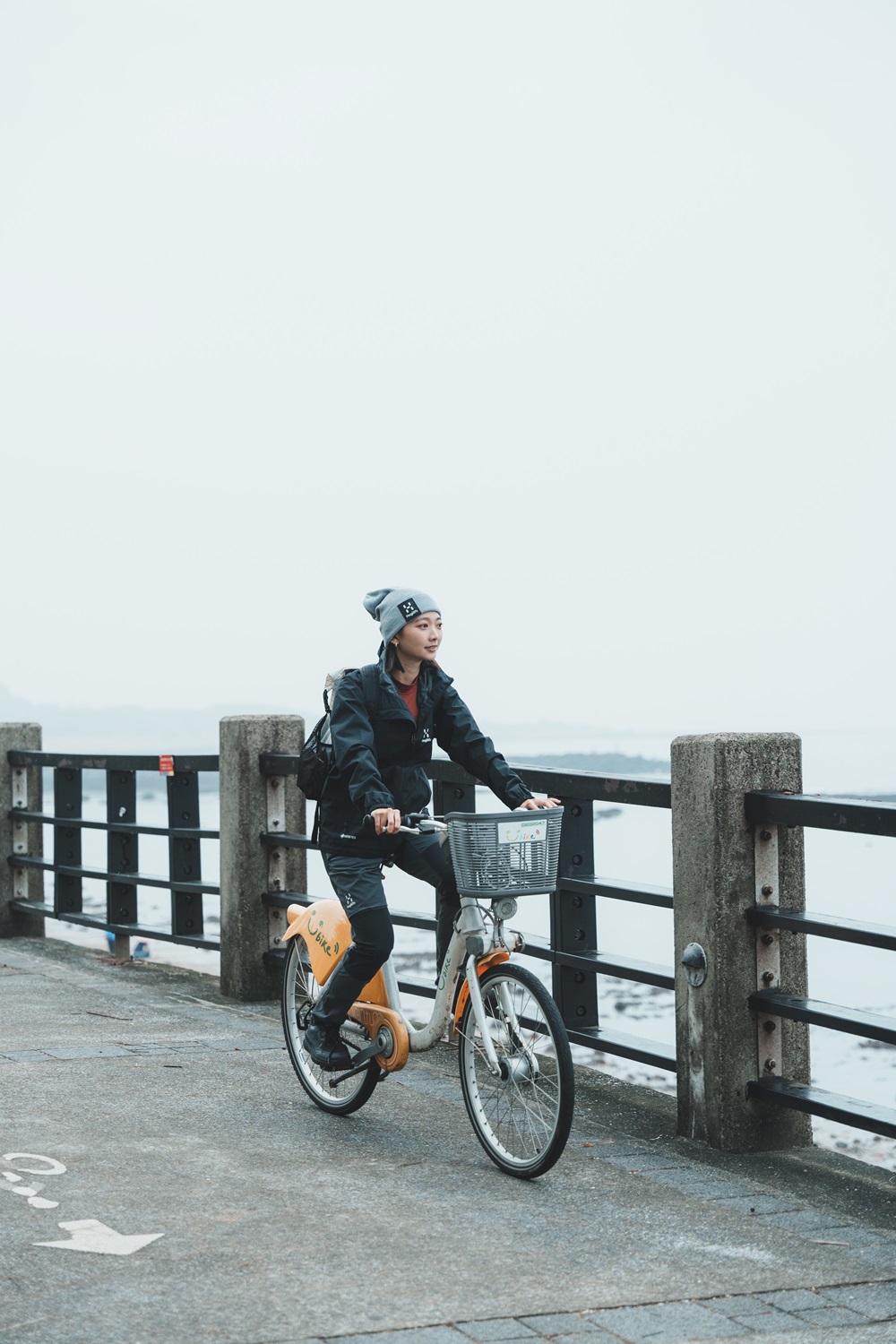 享受騎乘在海邊的愜意,另一種方式是從淺水灣向北騎乘,幾經規劃的腳踏車道路線此時顯得平易近人,偶飄的細雨和濕氣在 Kaise GTX 防水外套在搭配一件連帽外套作為中層保暖,加上頭部有 Aze 保暖毛帽的保護下,淡水冬天的冷冽不再那麼難以忍受。