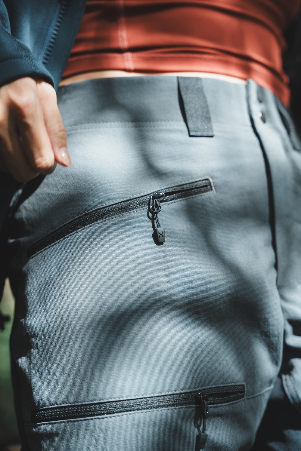習慣上山時穿著長褲,較有效避免防止草木刮傷及蚊蟲叮咬。Mid Silm 快乾長褲使用以耐用性著稱的 Climatic™ Rugged 面料,也可以看到膝蓋處這樣的高活動區域還有再增加彈性布料,讓褲子更耐穿。另外表面無氟碳化合物 DWR 處理增進抗汙性及防潑水性,是一件為戶外而生的褲子,一件可以穿很久,也符合 Haglofs “Less is more”的品牌理念。