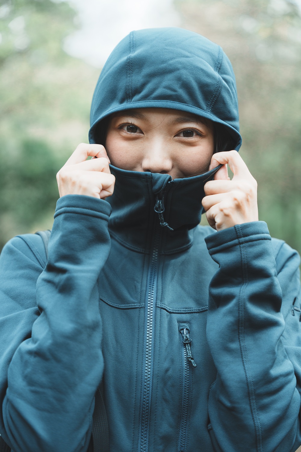 秋冬轉換之際的氣溫比較不穩定,在以選擇穿著 Rosson 連帽外套在防水外套內作為中層,若在山下還沒有到太冷的時候,亦可作為外層外套單穿,不管當作中層或最外層都適合。
