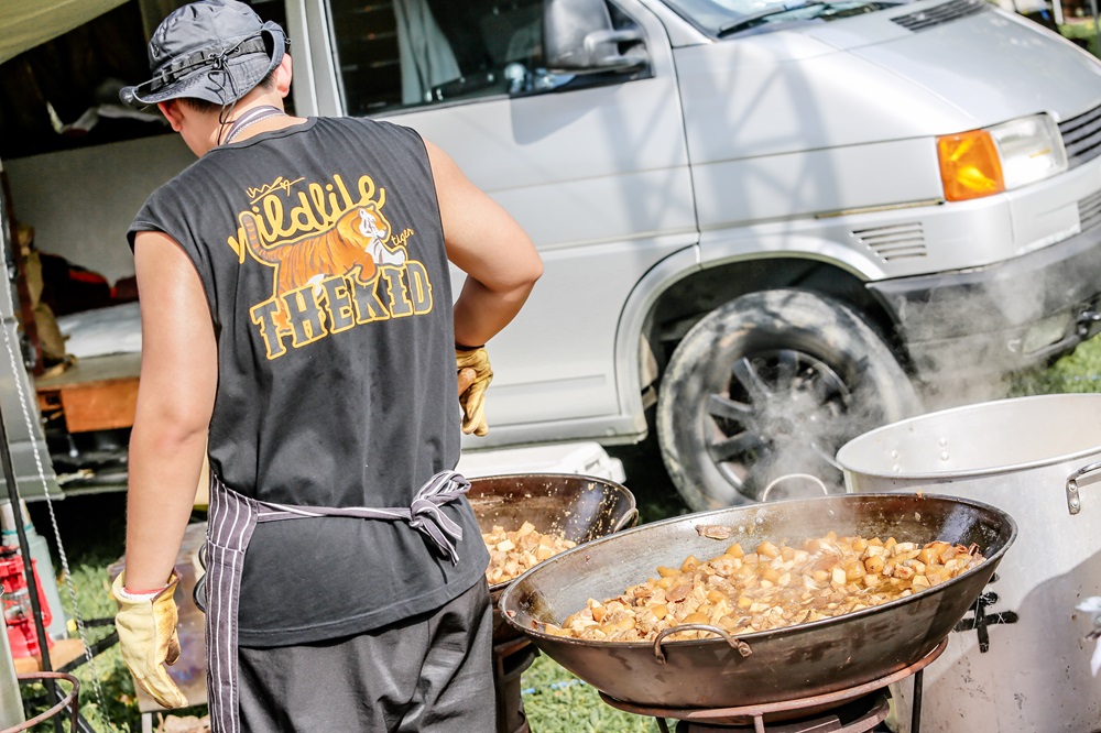 編輯這天大約是早上10點抵達現場,這時就已經看到負責晚餐的團隊馬不停蹄的備料中,非常有黑白大廚團體賽的既視感,連廚師本人都說:「我現在好像學餐阿姨!」特別安排供餐服務,為的就是讓大家能夠好好參與晚會的重頭戲,不會因為要煮晚餐而缺席重要的抽獎活動。