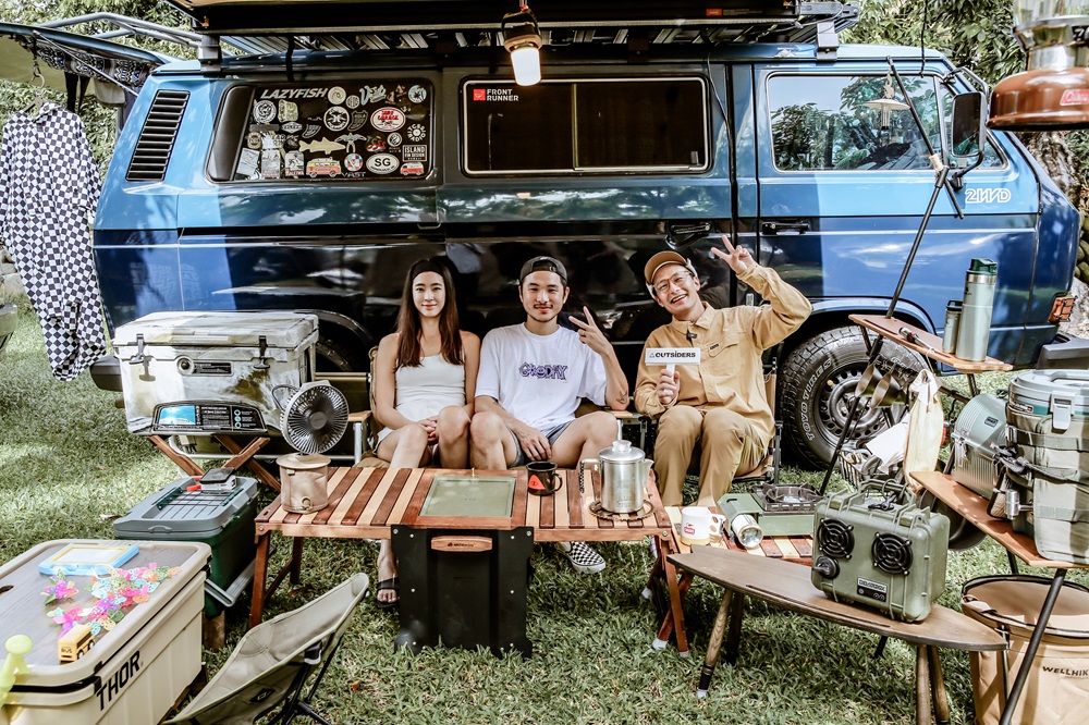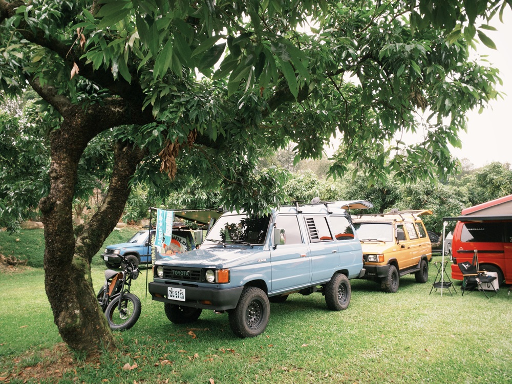村落的組成有情侶、夫妻、三五好友,也有帶小朋友的家庭,甚至是單飛露營的人也能和左右鄰居打成一片,就像是一個人前來參加的香港大叔,但前來拜訪的村民從沒停過,大家像是說好了一樣,一群人輪流帶著自己的露營椅來找他,倚靠在車旁的樹下圍成一圈,一邊播放著 Beyond 的海闊天空,一邊喝著啤酒,大家一起聊車、聊天南地北,我想這就是真正”眷村”的精神之所在。