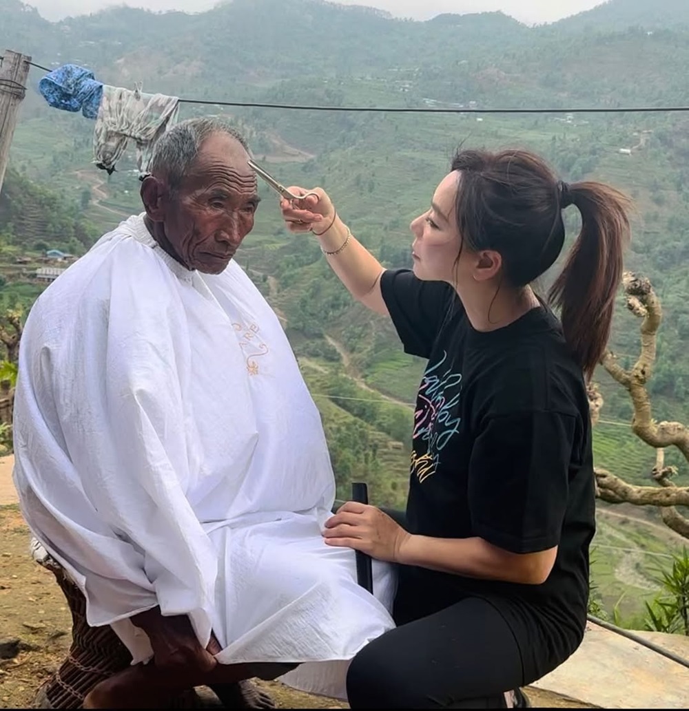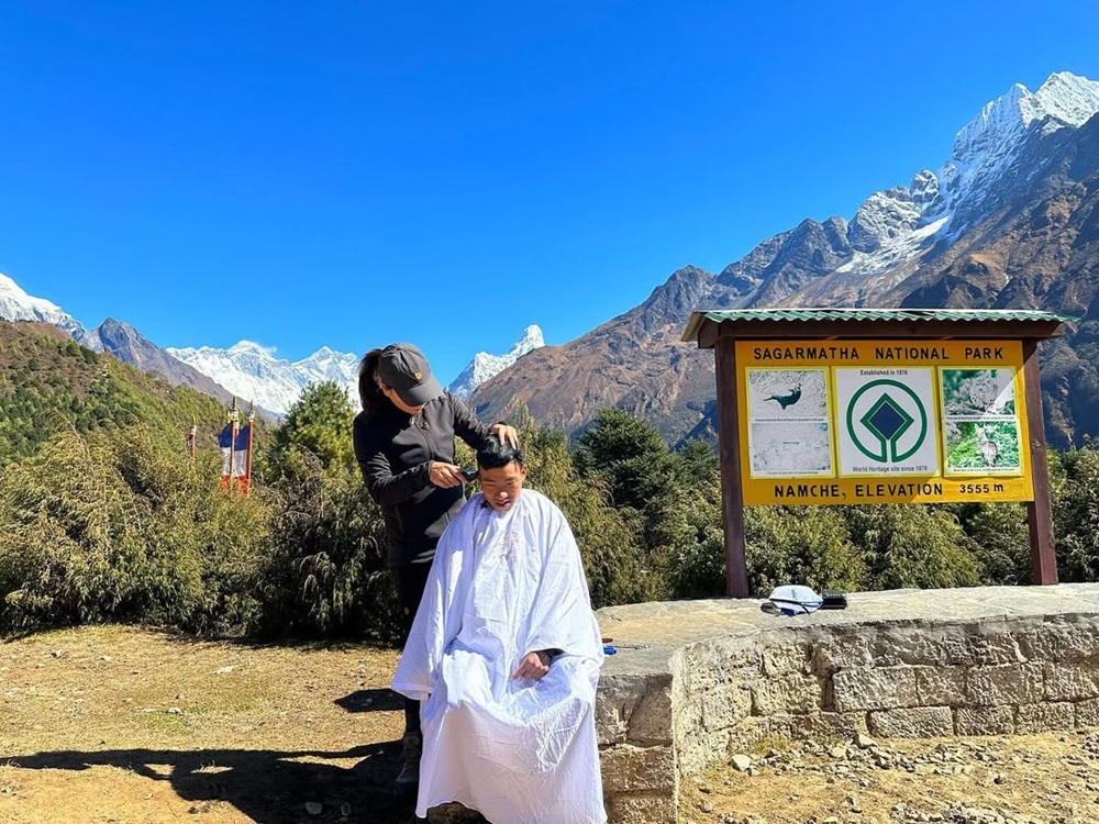 在 EBC 適應高度的休息日,停留在南崎巴札(Namche Bazaar)這個高山小鎮,Ivy 把握機會,完成了另一個長久以來的夢想,那就是在聖母峰山腳下義剪。「我跟嚮導說可不可以讓我幫這裡的居民剪頭髮,隔天他馬上帶我到一個合適的地點,讓我實現了這個心願。」