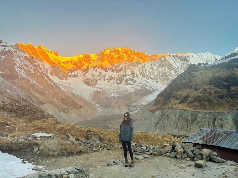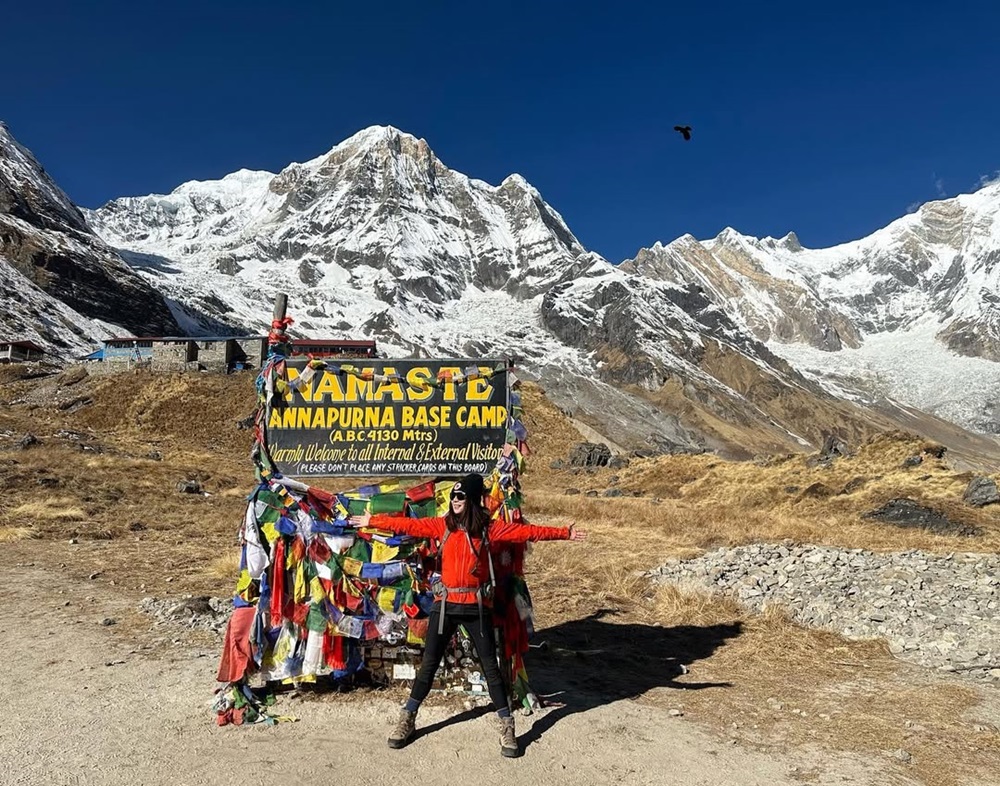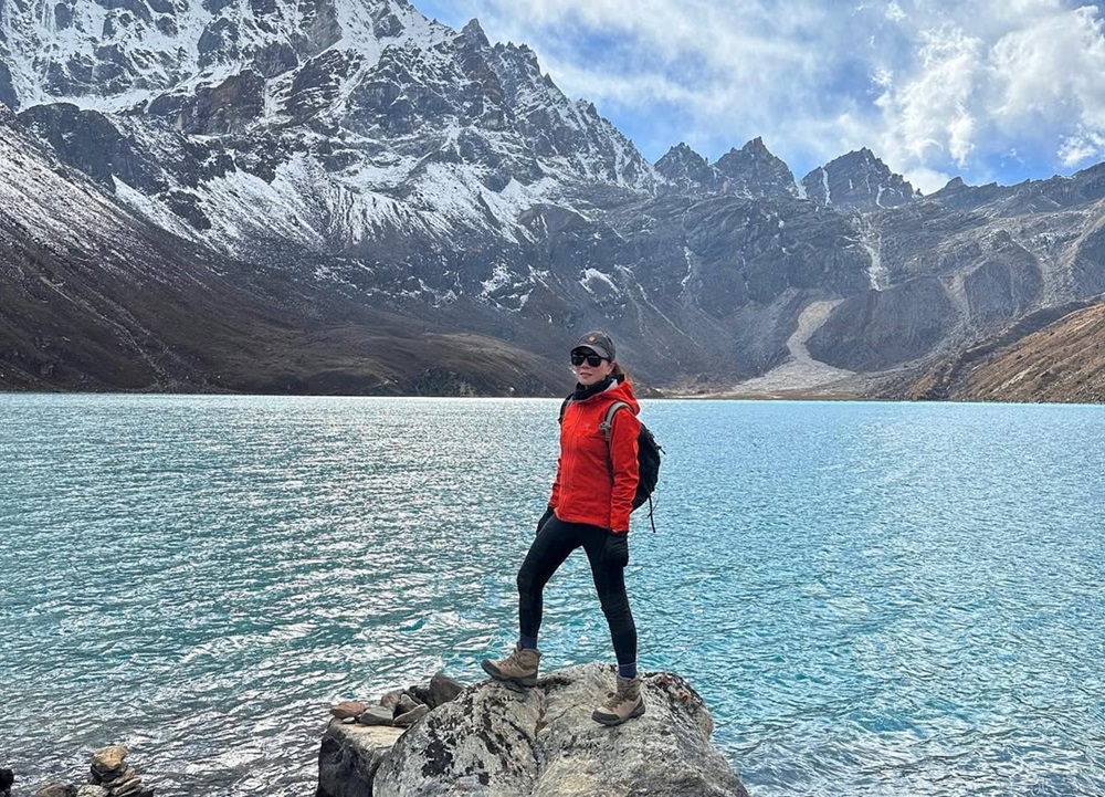 Ivy 第一個行程選擇安排聖母峰基地營(Everst Base Camp,簡稱 EBC),接著再完成安娜普娜基地營(Annapurna Base Camp,簡稱ABC)。在行進 EBC 的過程中,真正走到自己電腦桌布上看了三年的 Gokyo 湖畔,那一刻,忍不住流下眼淚,多年來的夢想終於親眼看見,「我永遠記得站在聖母峰基地營的那一刻,我又繼續哭個不停,因為終於完成一直以來的夢想。」