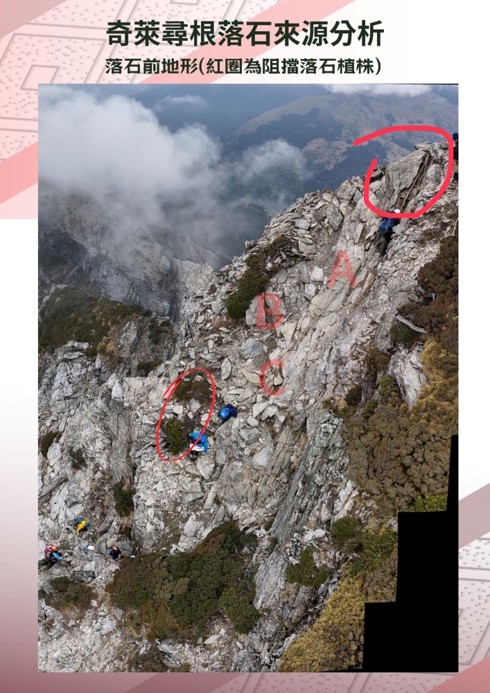 這場落石意外並非源於明顯的人為疏失,而是多種自然因素交疊後的突發天災。如此大的巨石掉落,固然造成學生與教練受傷,但竟奇蹟似地沒有釀成更重大的傷亡。這可歸功於本次尋根活動前的完善準備,以及現場周全的戒護與專業展現。蔡賢教練替我們整理了幾個重點: