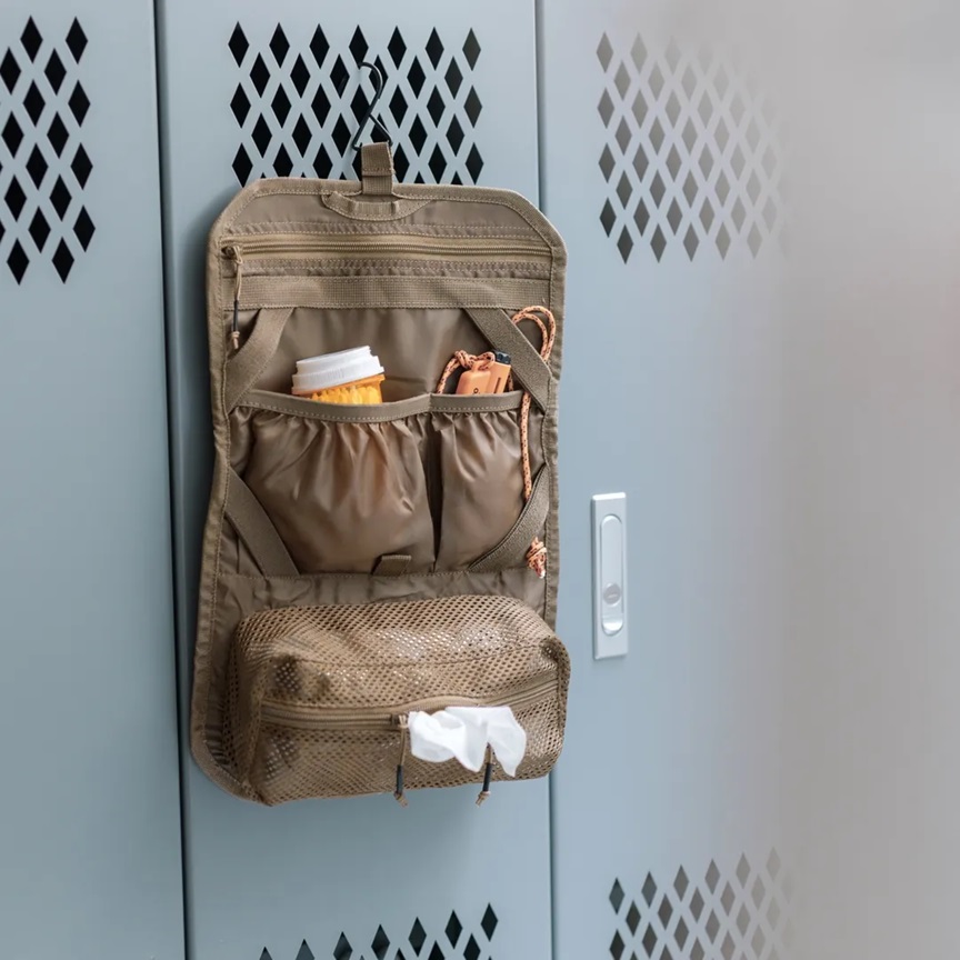 當外出要攜帶的物品變多了,在移動的過程中,行李中瓶瓶罐罐的液體也容易會有外漏、打翻的情形,這時候就特別推薦戶外品牌推出的盥洗包,在戶外使用的盥洗包會更注重機能性,還具備防水、防污的材質選擇,無論是露營或是旅行都非常合適。許多設計更考量到收納便利性,配備掛勾等等,當然還有最重要的外型設計,隨身小物也有保持著戶外風格的態度。