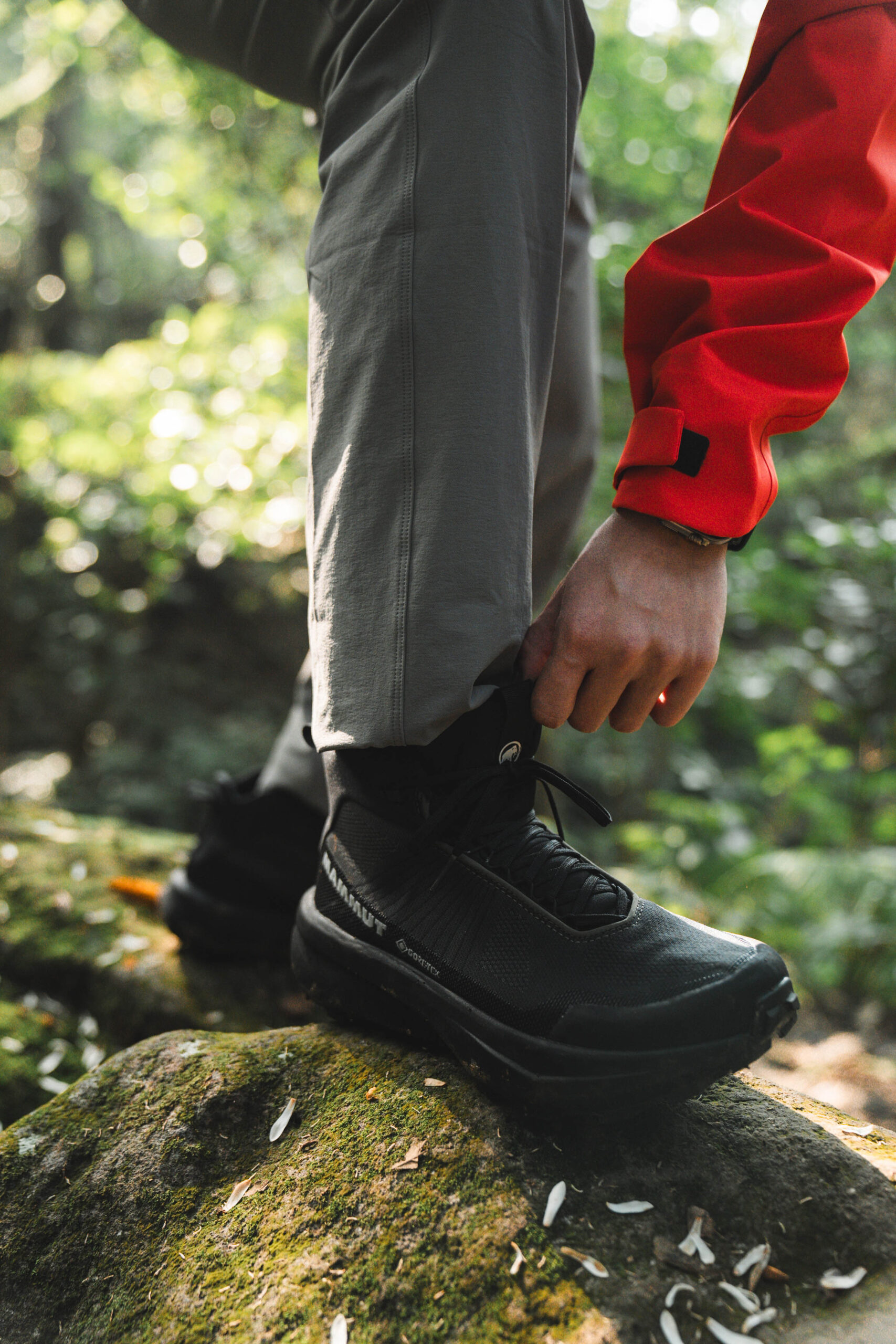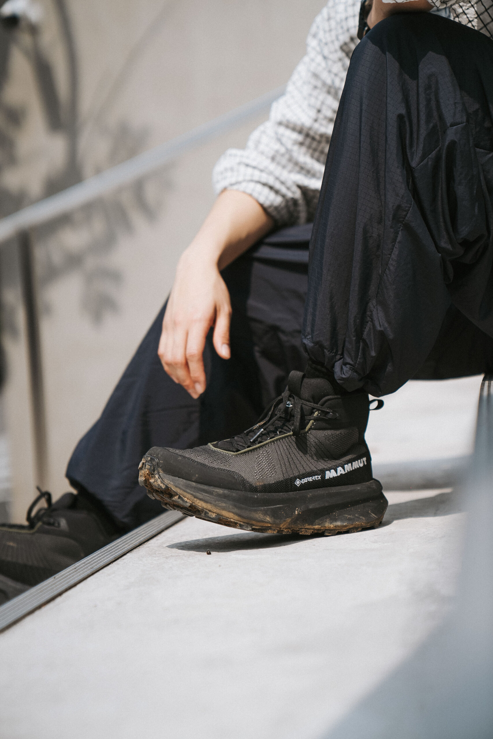▲ Mammut Aenergy Mtn Mid GTX 不只是一雙登山健行鞋,更可以是街頭潮流單品,承載著北歐基因,帥氣簡約的外型,不管是在街頭散策或是城市通勤都毫無違和感;長褲:Jugem JG24 Active Easy Pants