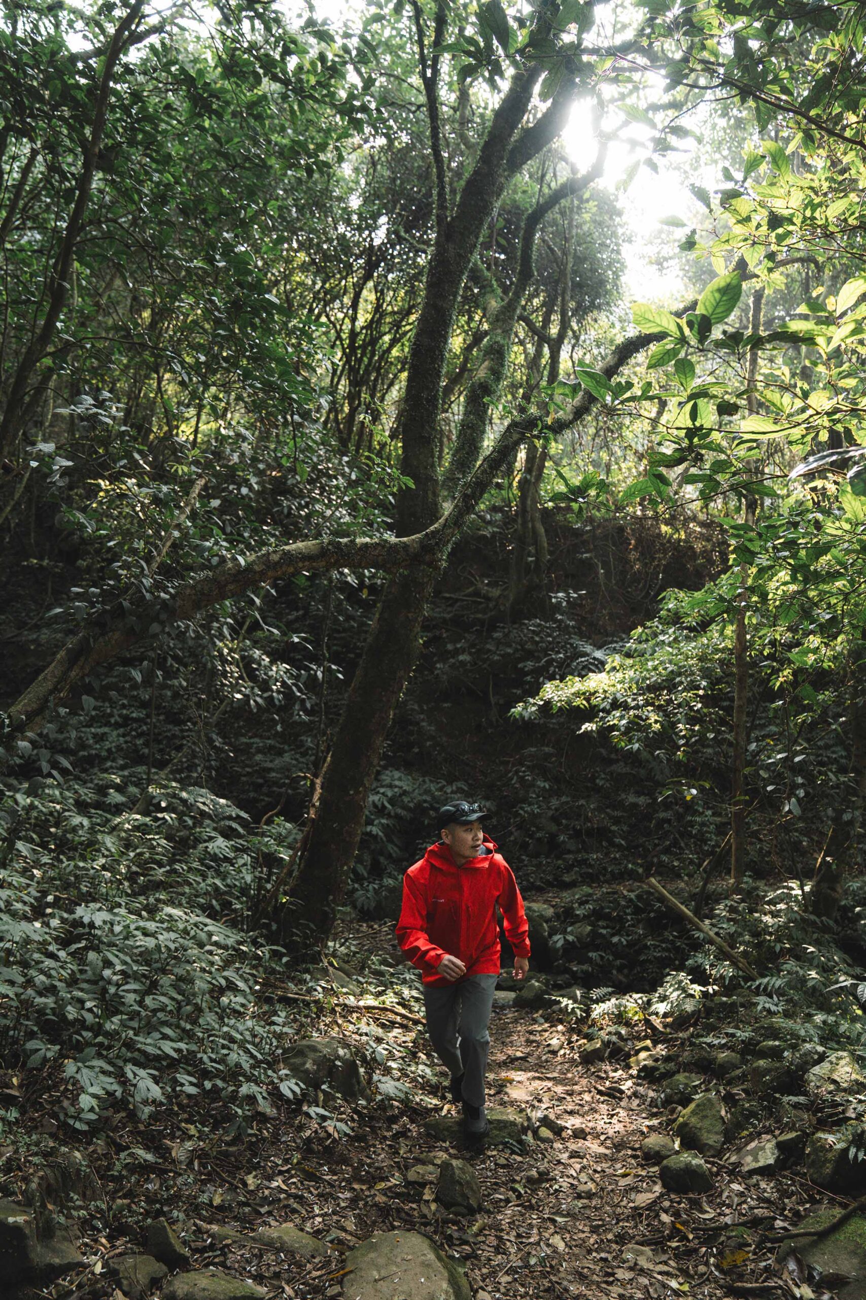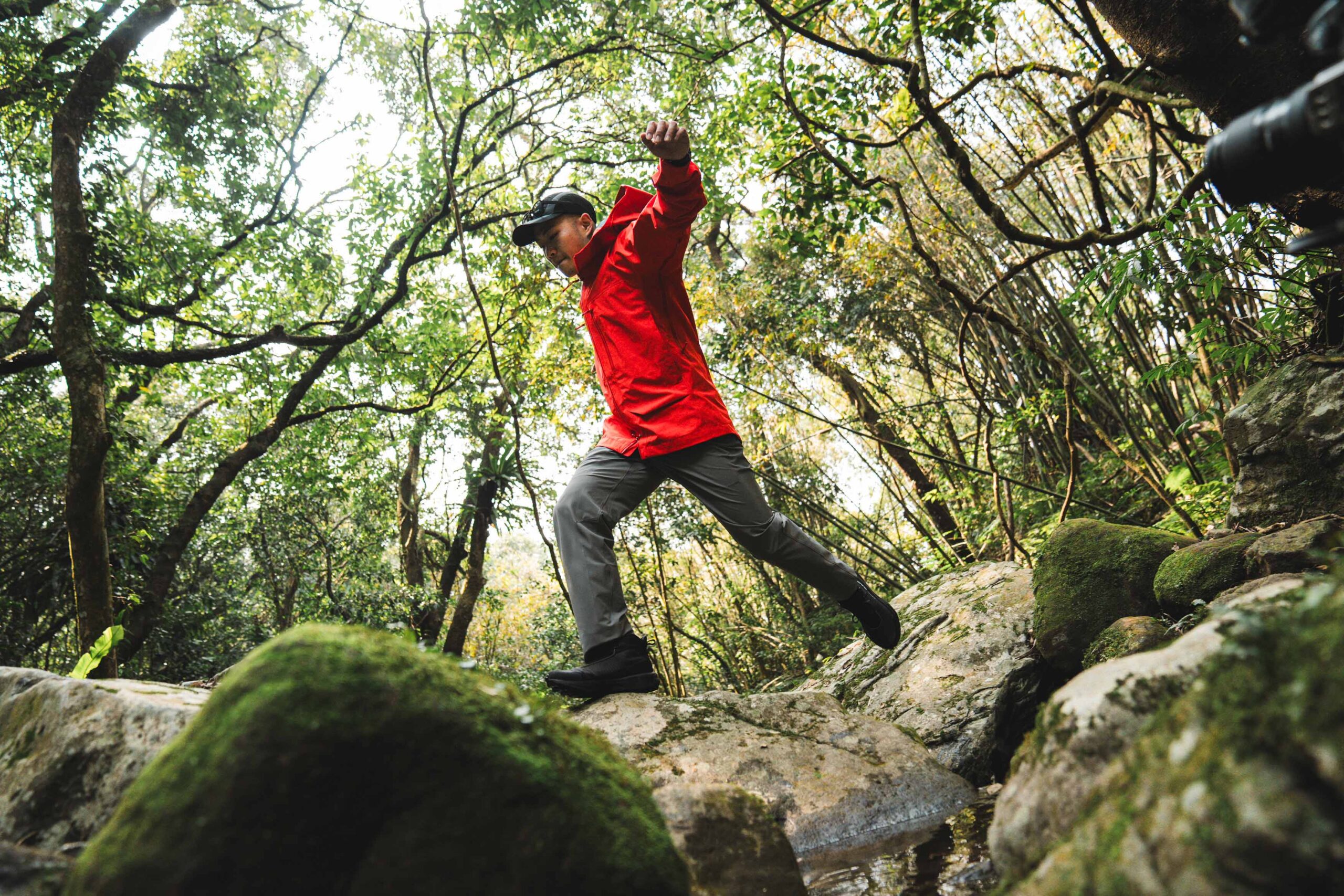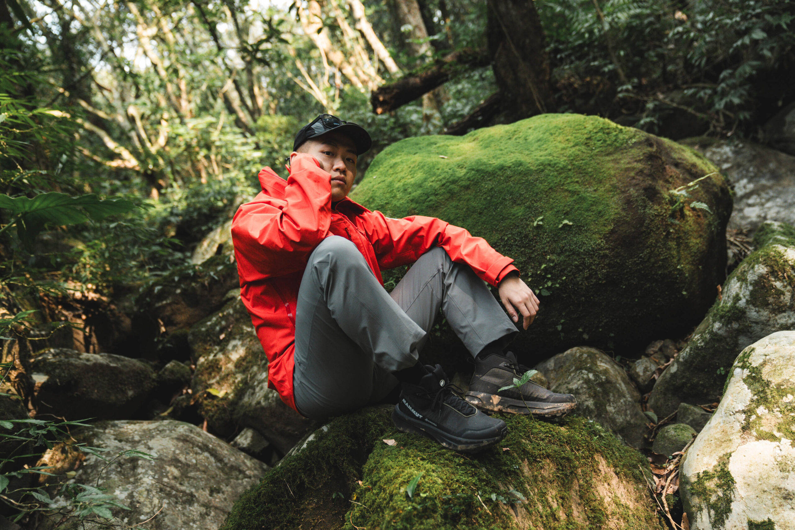 說到扭傷、滑倒,子安有感而發:「像我今天穿的 Aenergy Mtn Mid GTX 登山鞋,中筒設計剛好可以穩定腳踝,對容易扭傷的人來說真的很重要。而且它的抓地力很好,無論是溼滑泥濘樹根路,或是顛簸的原始步道,都能穩定支撐我的步伐。」