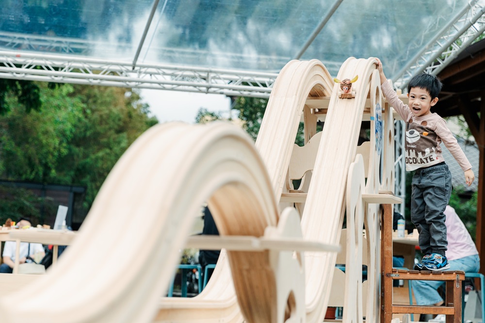 為呼應自然採集與藝術探索,今年度茶山繚療特別邀請來自大溪的《BUBU 跳恰恰》手作木飛車計畫,是木博館為推廣木育生活的巡迴行動,這次不僅運來超過七米的大型飆速軌道,更與坪林採集人共作室跨(流)域合作,讓茶山成為最好玩的大自然創作地!