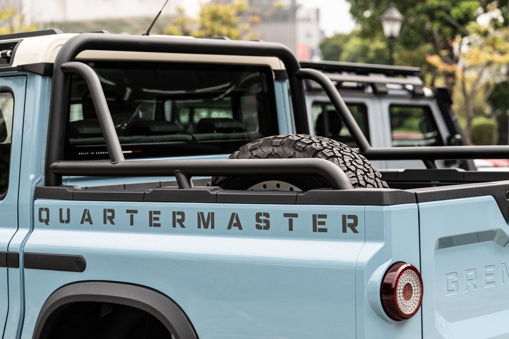 為提升行駛穩定性,工程團隊悉心調校懸吊系統,在確保越野性能的同時,提供更為細膩舒適的公路駕馭感受。靈活的後車斗配置為 Grenadier Quartermaster 帶來更高的實用性,搭配豐富的收納與固定配件,如可鎖式後車斗捲簾、後車斗備胎固定組、或車頂架等,可依個人化需求靈活配置,適度增加實用性與多元功能,展現強悍且風格獨具的探險本色,成為無可匹敵的全能夥伴。