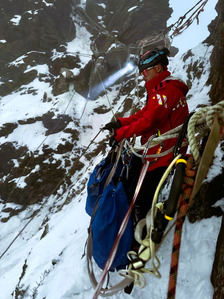 最印象深刻的例子,莫過於今年一月令他刻骨銘心的馬博橫斷救援。「傷者墜落烏拉孟斷崖,我們帶去的 150 公尺繩索都不夠。岩石又很銳利,繩索隨時可能斷裂。我跟資深學長站在懸崖邊,眼前只有兩個腳掌寬的站立點,風凜冽地吹。學長說他來下降,那一刻,我心裡又緊張又欽佩,也不知道該不該說話,擔心出聲會干擾到學長的指示。最後學長找到了登山者掉落的登山杖,但還是不見失蹤者人影。那天寒風刺骨,我們只能撤退回山屋,研擬新的架繩策略再度下切 (後來得知該名傷者墜落 400 公尺深)。」這個過程驚險萬分,隊員們也因此意識到,大自然從不會給予任何一個人差別待遇,無論是好是壞。