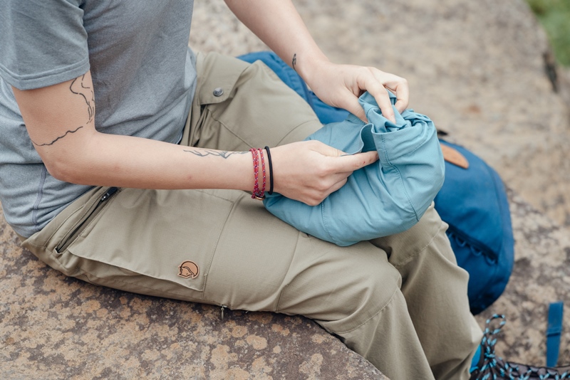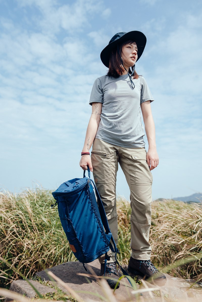 Fjällräven 獨特的 G-1000 的布料極致耐磨,加上環保天然的上蠟防水塗層,是許多戶外玩家熟悉的經典。「今年全新『Midsummer』系列,因為是用更輕薄的 G-1000 Air Stretch 布料,我覺得很適合在台灣穿著」除了對機能的讚許,柯玟曲也大力推薦 Midsummer 的設計風格,修身好動的剪裁版型,不論是夏季百岳、平時中級山與郊山、露營活動、城市旅遊都非常適合。