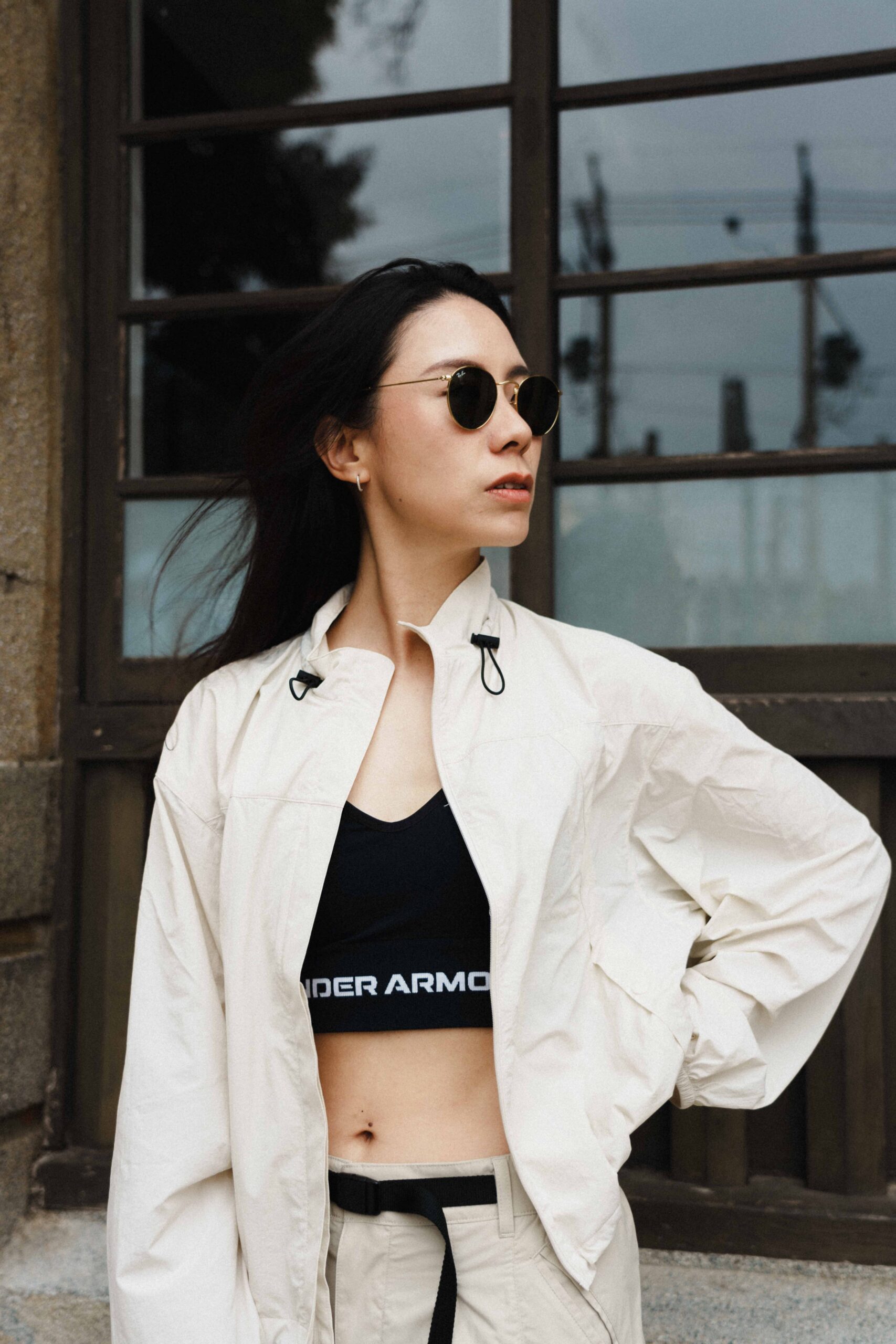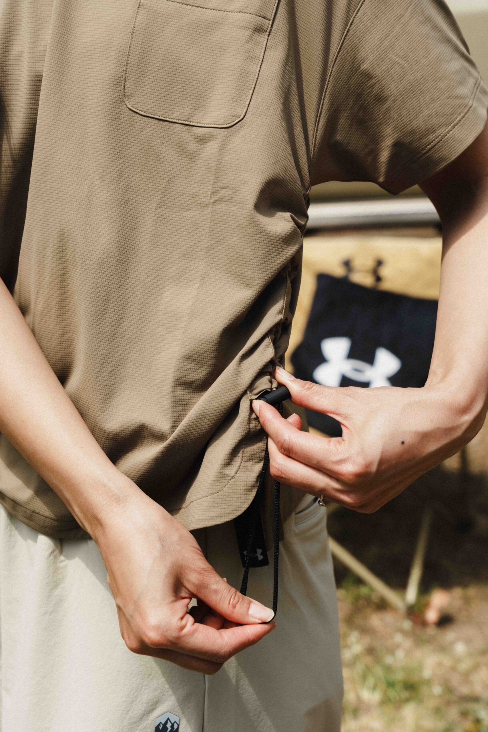「我會選擇那些設計感強一點、但又不會太高調的機能服飾」Elvy 說,「像是今天實著的 UA Urban Outdoor 系列,既有機能性,又兼顧俐落外型,搭配起來也比較有彈性。」