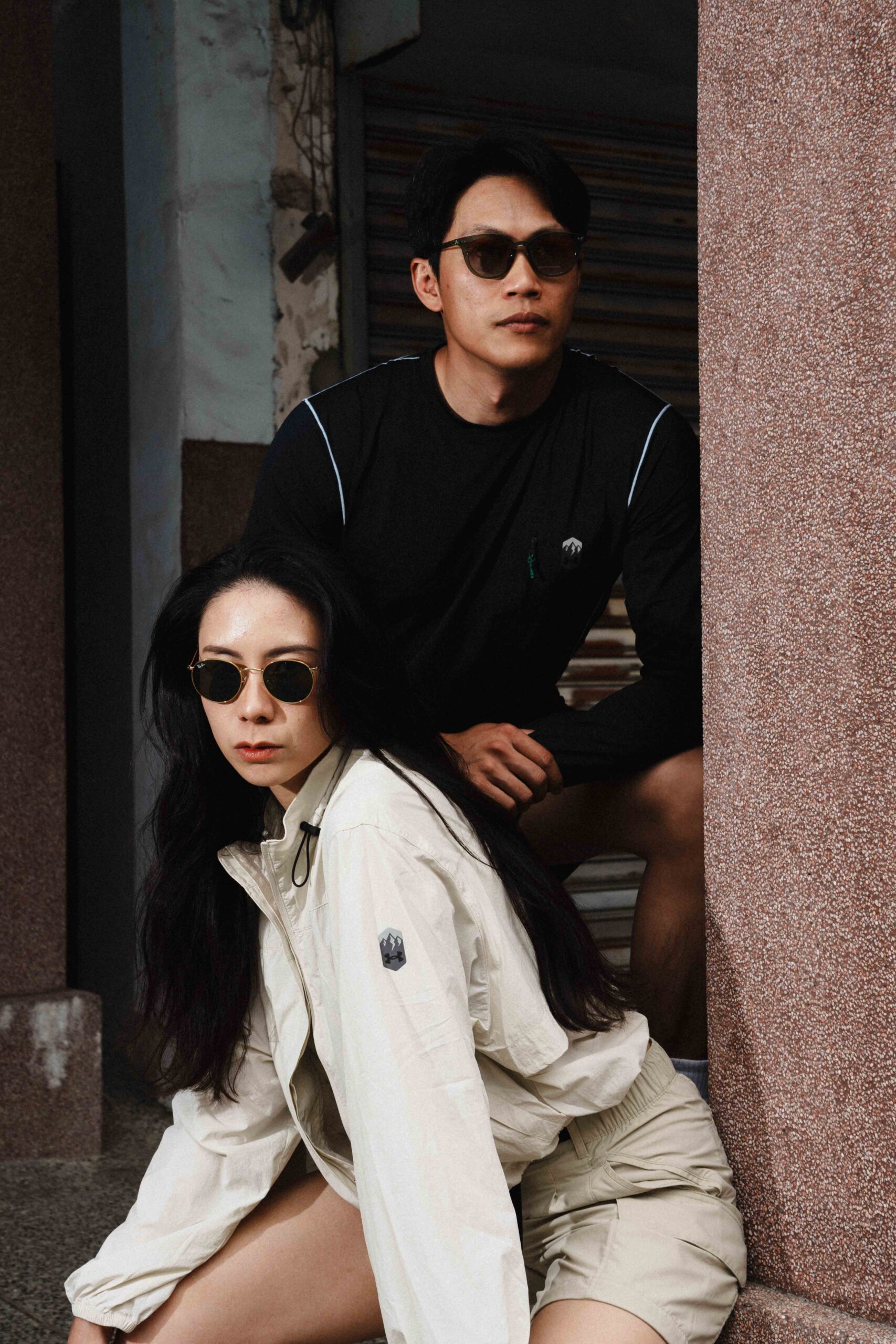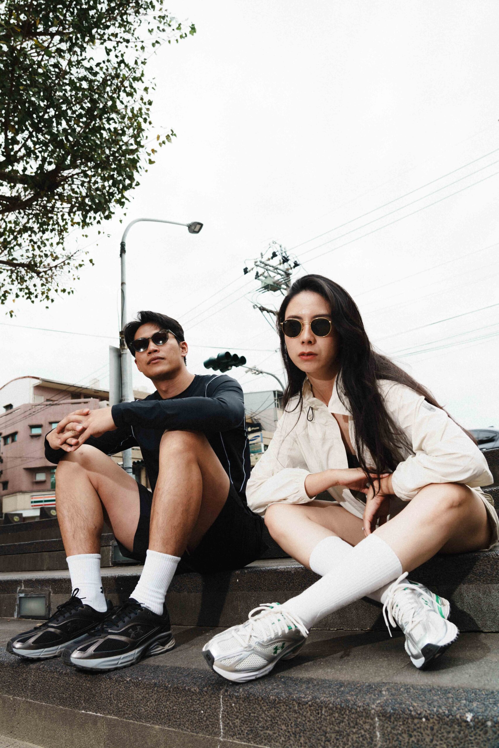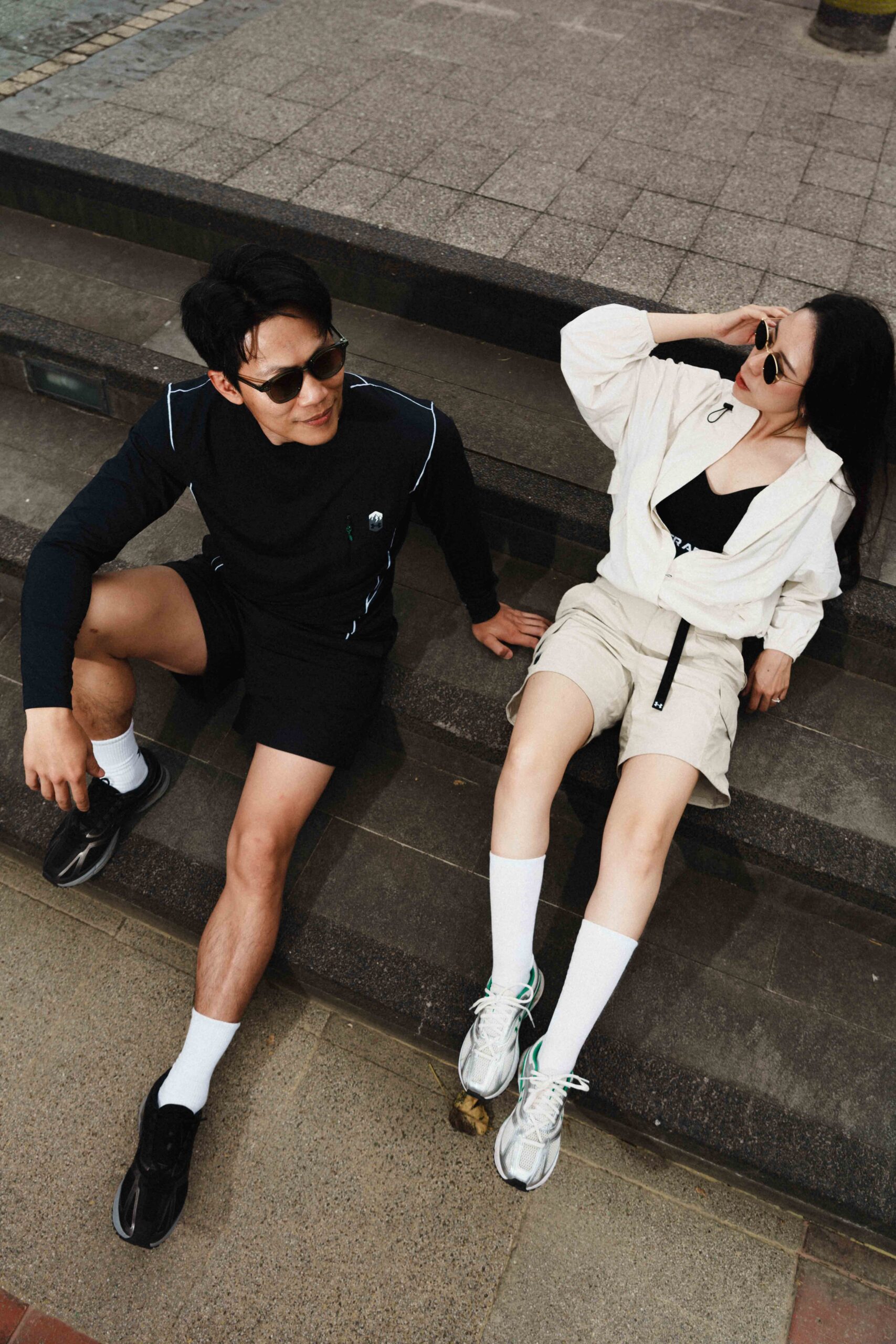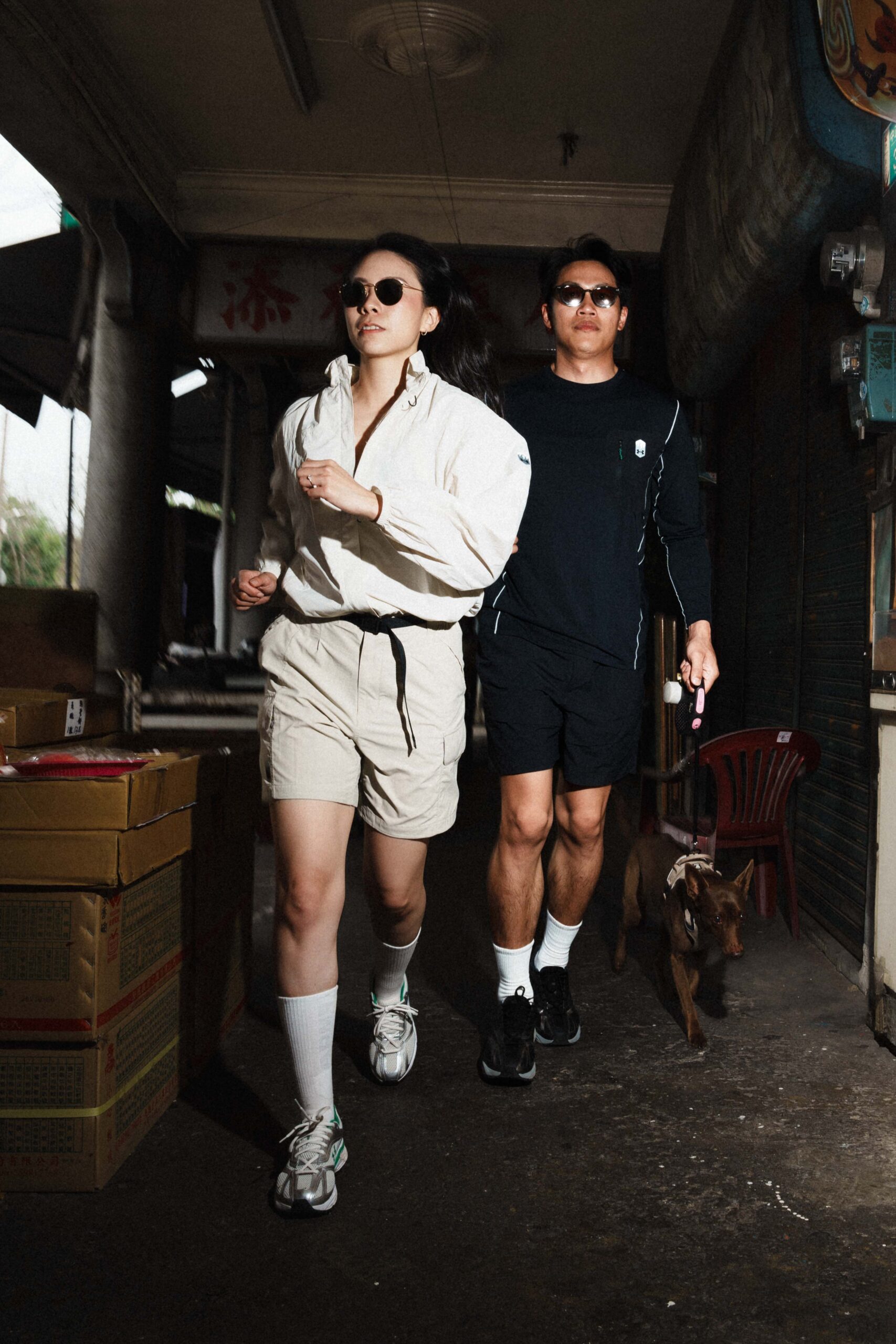 漫步在新化老街,吉二夫婦換上另一套 UA Urban Outdoor 系列勁裝演繹城市街頭時尚。