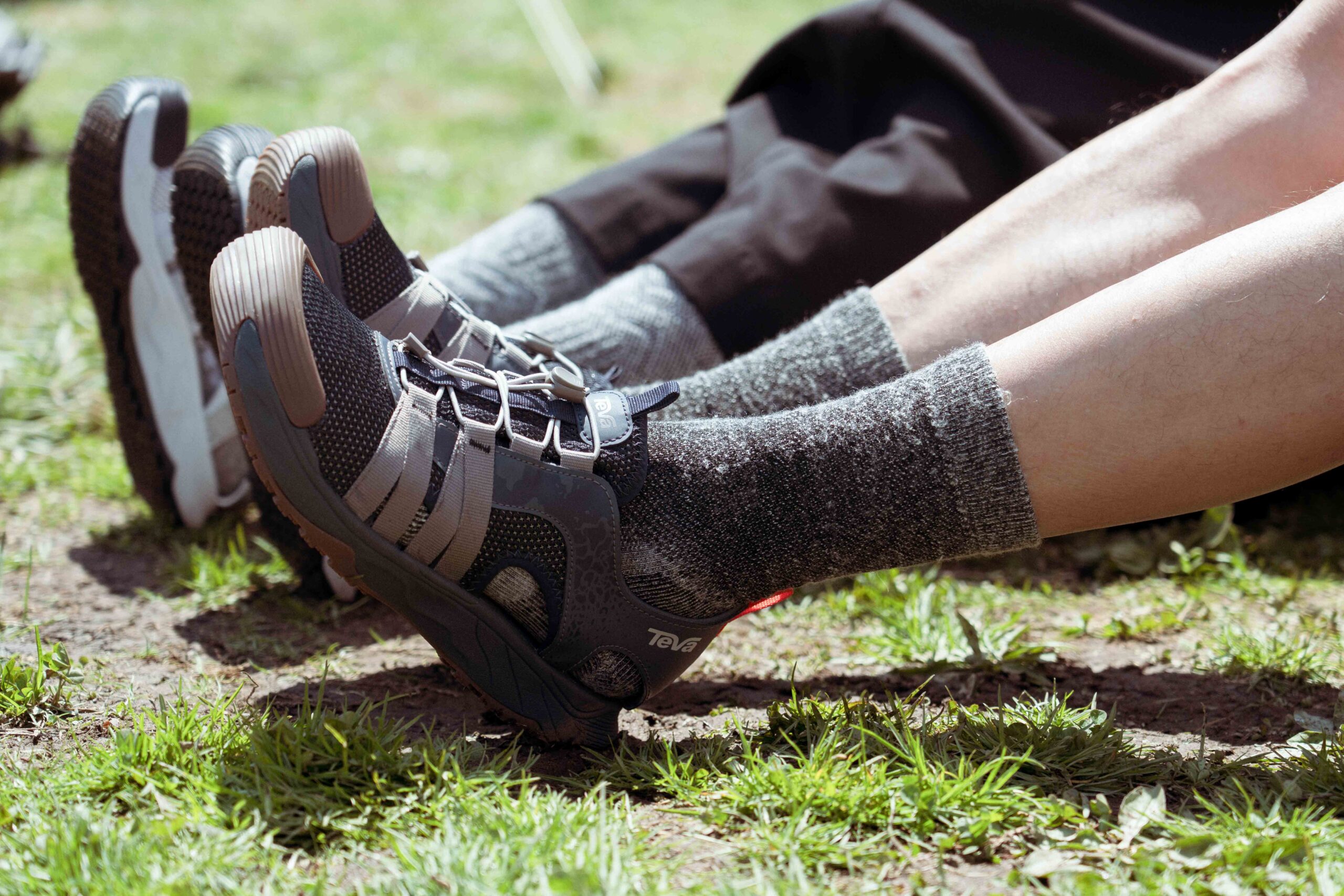 第二天是我們的「工作最滿」日程,要跑兩個人物專訪、集合團員拍照、拜訪五個品牌、參加數個工作坊及活動體驗,還要拍攝上傳社群,而且在這幅員廣闊的露營場地,從露營區走到中央木製廁所就要花上 10 分鐘。但 Hydratrek Sandal CT 樹蛙機能護趾涼鞋的後跟固定結構與全腳掌支撐穩定性給了我們足夠的包覆安全性,不僅走得輕盈、久站也不易疲勞。