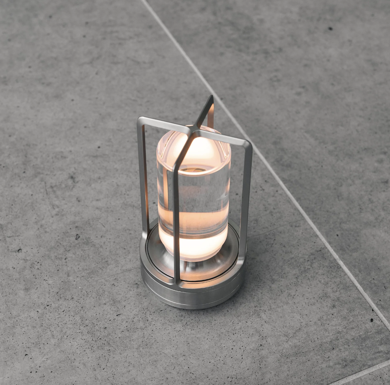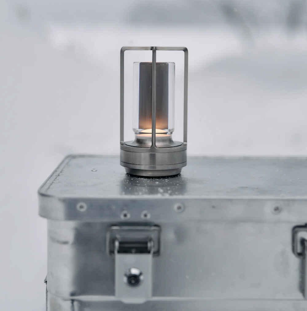 同樣由 Wanderout 攜手日本高端照明品牌 Ambientec 聯名打造精緻的現代 LED 燈具,採用壓鑄金屬底座,中間拋光實心水晶玻璃,層次中帶有柔和的光感,燈色由溫暖的白熾色到暖橙色,共四段色階可調節,同時也具備 IP 66 高階防塵防水性能,既能在戶外使用,也可以在室內空間一角點綴,充滿質感的銀色工藝美學,為整體戶外風格添上一份靜謐與質感。