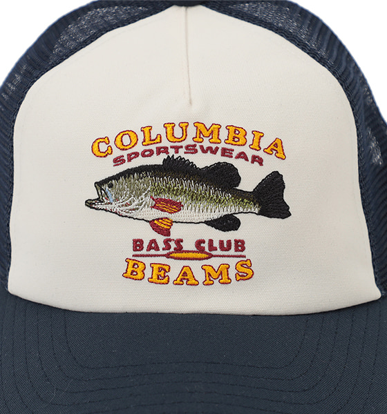 聯名帽款則以魚形刺繡點綴細節,帽前印有「Columbia Sportswear BEAMS Bass Club」字樣,完美呼應本次釣魚主題。後側採用透氣網布設計,兼具通風與舒適度,是整體造型中不可或缺的實用單品。