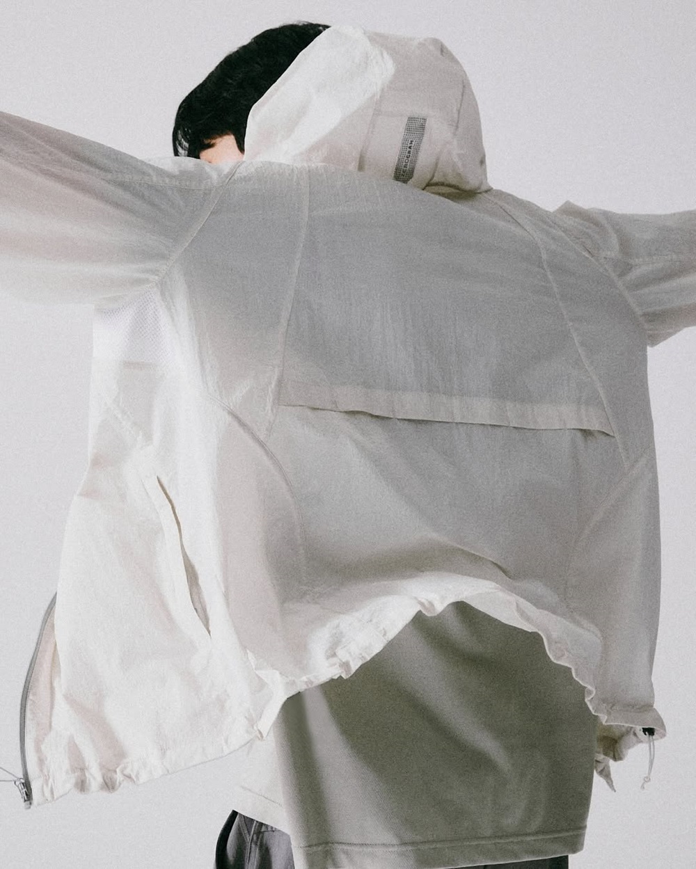 這次發表的兩款輕量型外套,不僅方便進行各種戶外活動,設計上也極具機能性。外套內部巧妙配置了網布材質,有效促進內部空氣流通,防止運動過程中體溫過高。此外,採用經過特殊加工處理的高密度 30D 尼龍「Mitchell布料」,大幅減少布料與肌膚的接觸面積,即使在濕熱環境中,也能減輕汗水造成的黏膩不適感。布料同時具備防潑水加工與抗皺處理,即便遇到小雨也能輕鬆應對。