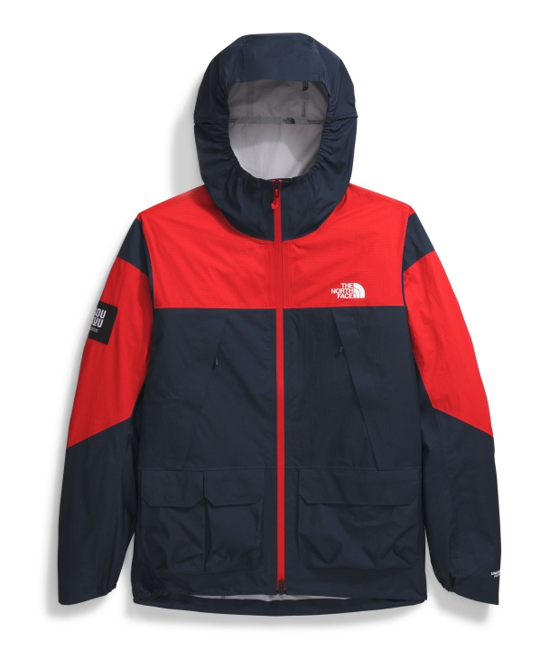 聯名系列主打的背包式防水外套,以「都市藍及艾肯紅」鮮明撞色勾勒山川輪廓,DRYVENT 防水材質協助探索者抵擋突來的風雨,立體剪裁拼接模擬岩層肌理,融入聯名品牌標識,搭配多口袋設計。