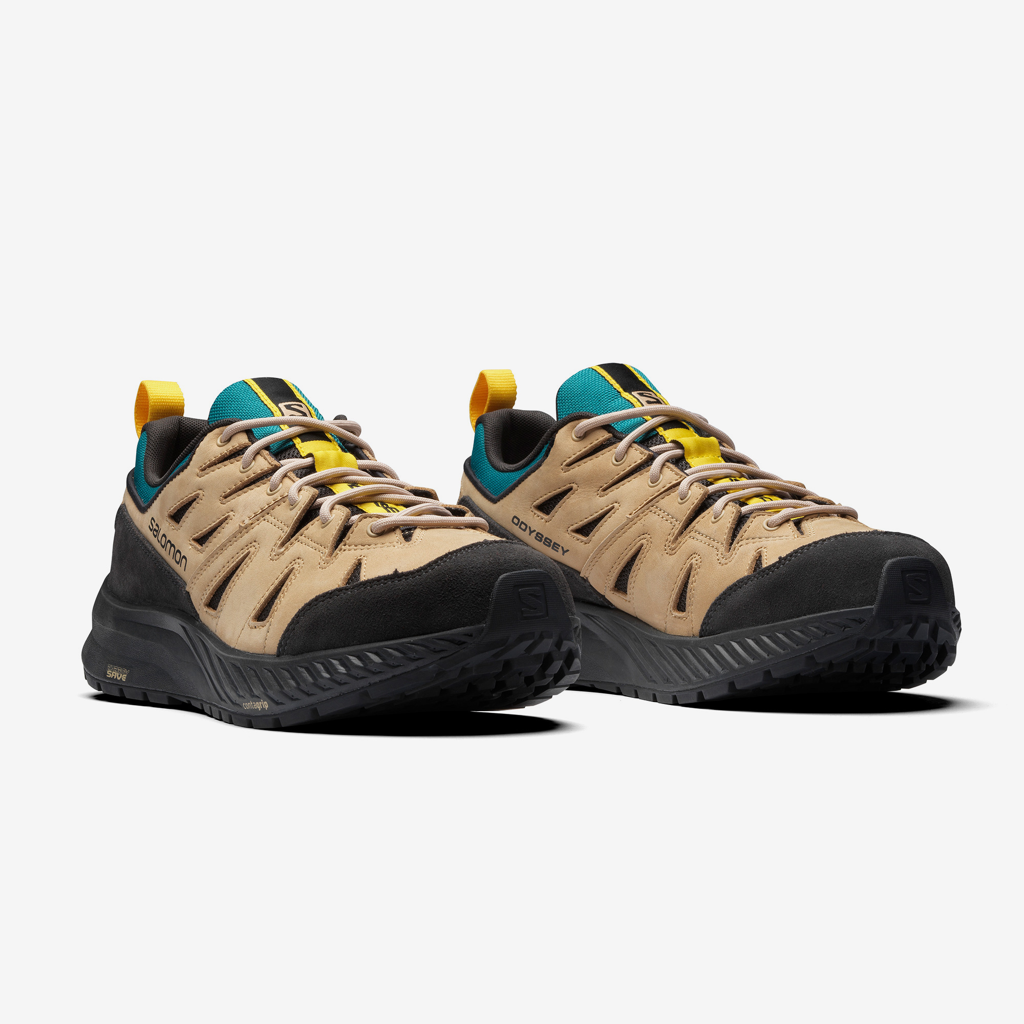 論性能來說,Odyssey Advanced 早已是一雙良好表現的高階戶外鞋款,而為了讓其更適合日常搭配,配色上便利用大地色系作為主軸並搭配上明亮的黃色、湖水綠作為點綴,鮮明的色彩對比傳遞濃厚的復古味,而這也正是 Salomon 擅長的手法,透過不同材質的運用配上撞色點綴的協調,讓人感到熟悉的可不只是鞋身印上品牌字樣這麼簡單,長期下來也成為 Salomon 獨有的標誌。