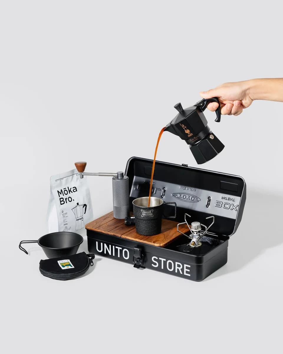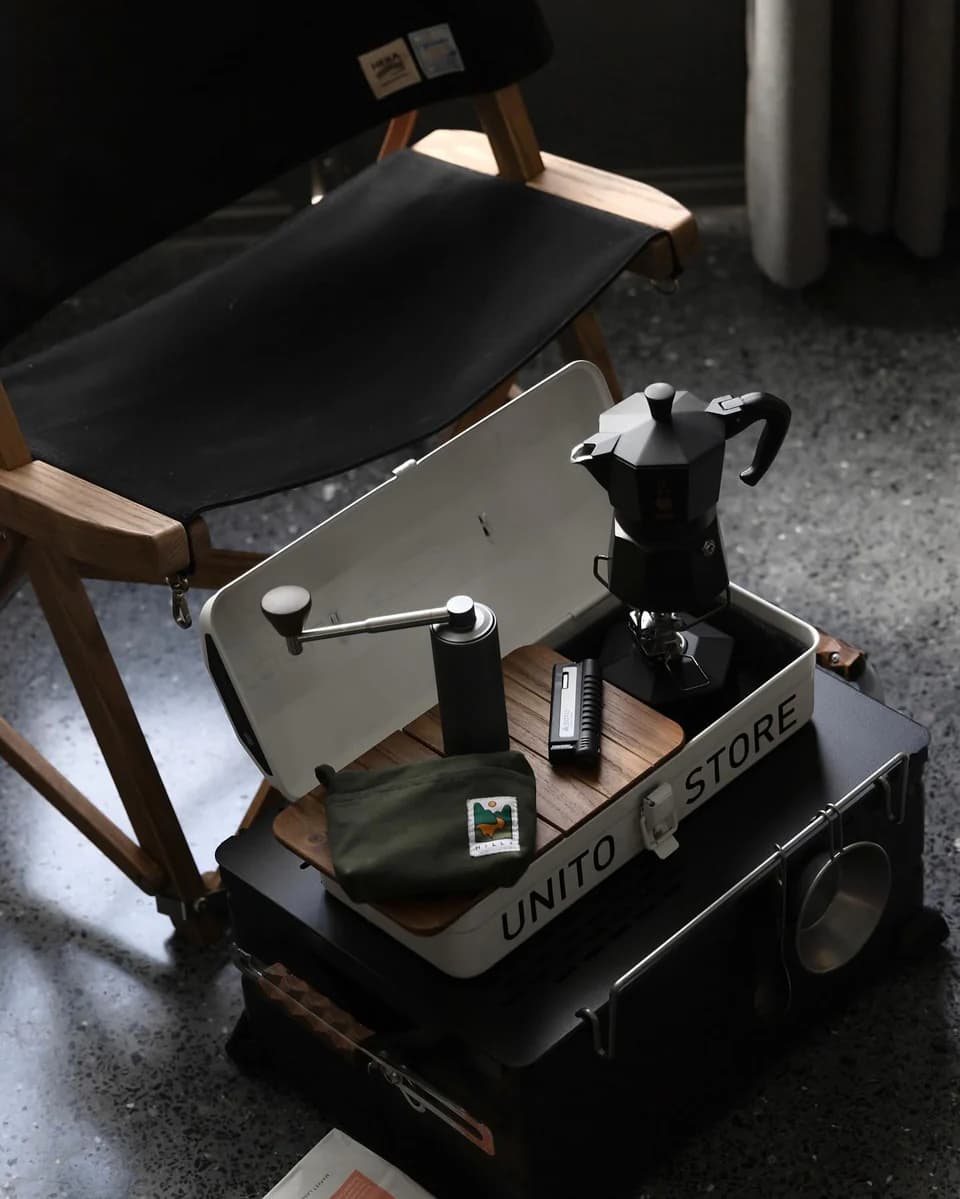 由泰國戶外風格品牌 UNITO 攜手日本百年鐵製品工廠 TOYO Steel 合作打造的這款咖啡工具箱,是專為咖啡控與風格玩家設計的戶外儀式道具。沿用 TOYO 最經典的 Y-350 工具箱為基底,全鋼材一體成型設計,堅固耐用、收納有型,內部特別為咖啡沖煮配置打造專屬隔層,可完整收納濾杯、手沖壺、秤、豆罐等器具,露營帶一箱搞定。鋼材質感細節搭配 UNITO 標誌性字樣,風格強烈,低調又吸睛,是一款讓你光提著就帥的咖啡裝備。