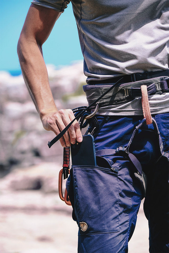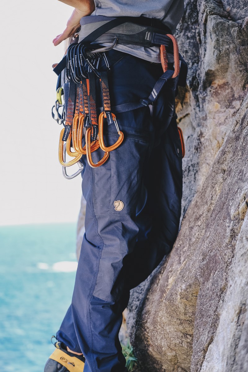 ▲Fjällräven Midsummer 褲款,彈性與耐磨滿足了攀岩的需要;側邊拉鍊開口通風,讓每個在岩壁上吹風的時刻更 CHILL。跳脫一般傳統登山褲的印象,讓裝備用途再擴大。