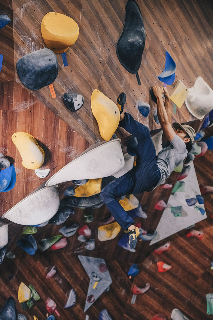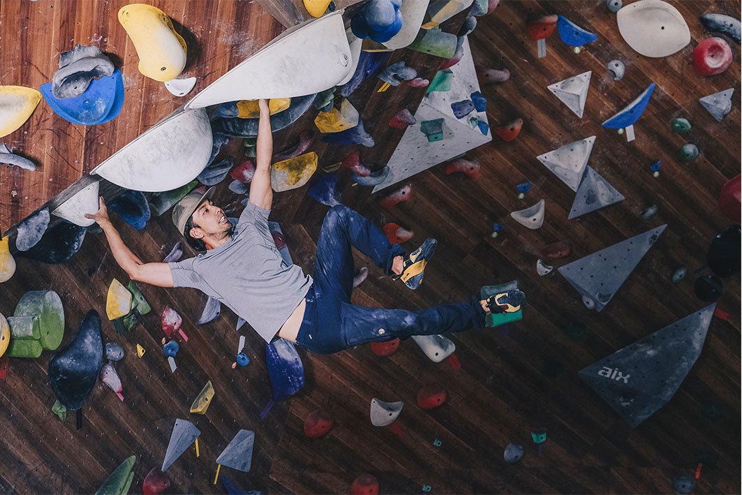 當觸摸到岩壁的那一瞬間,李哲誠眼神中透露出一股不同的專注,那些從前置準備、調整呼吸、一步一步往上爬的過程,彷彿是某種儀式的展現,舉手投足間散發出他對攀岩難以言喻的熱衷與重視。