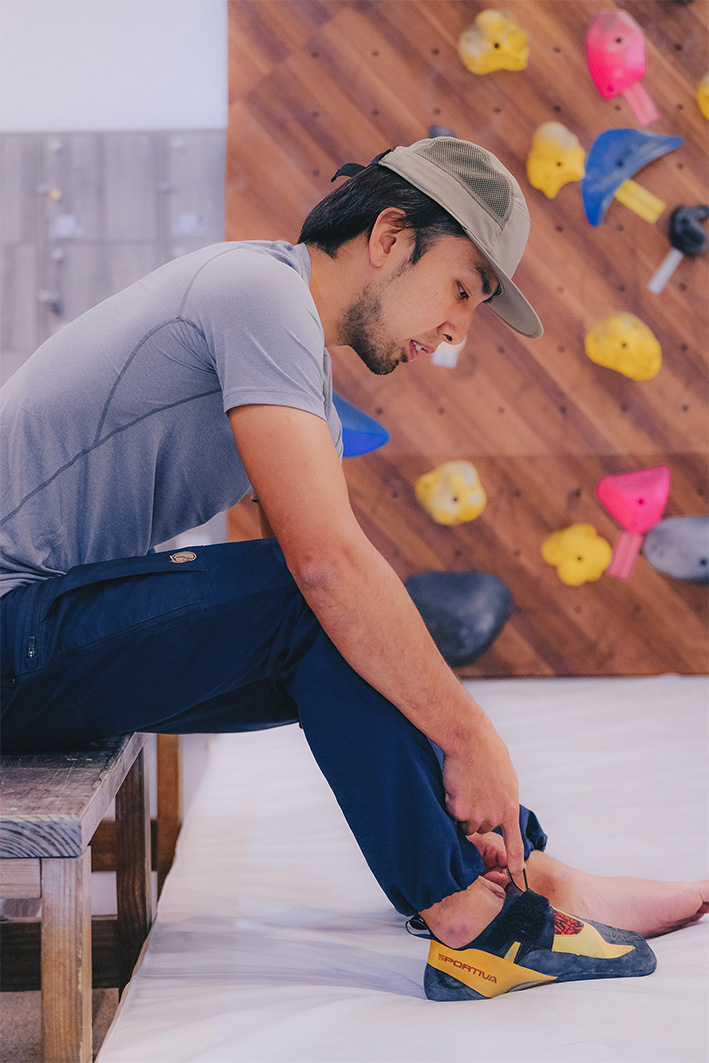 攀岩是登山運動的一環,平時的攀岩訓練也可以幫助自己運用在登山上面,像是踩點的腳法、協調性、核心訓練等等,訓練攀岩再回到登山後,各個困難地形都會顯得更游刃有餘,因此也是很好的百岳行前訓練,亦是大誠平時維持體能必備的訓練之一。有一件這樣的褲款,讓他更恣意安排戶外行程,輕鬆遊走在步道與岩壁之間。