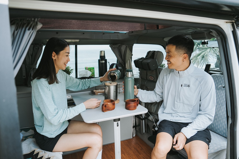 這天,看著小量和嘉嘉不斷從車內拿出各種所需物品,一下是搬出桌椅,一下是煮咖啡,一下又是泡茶,車上的每個角落都藏著屬於他們的生活方式與習慣。車泊的日常,是務實與浪漫的並存,從配置收納到煮一餐飯,每個細節都反映著他們的生活智慧。