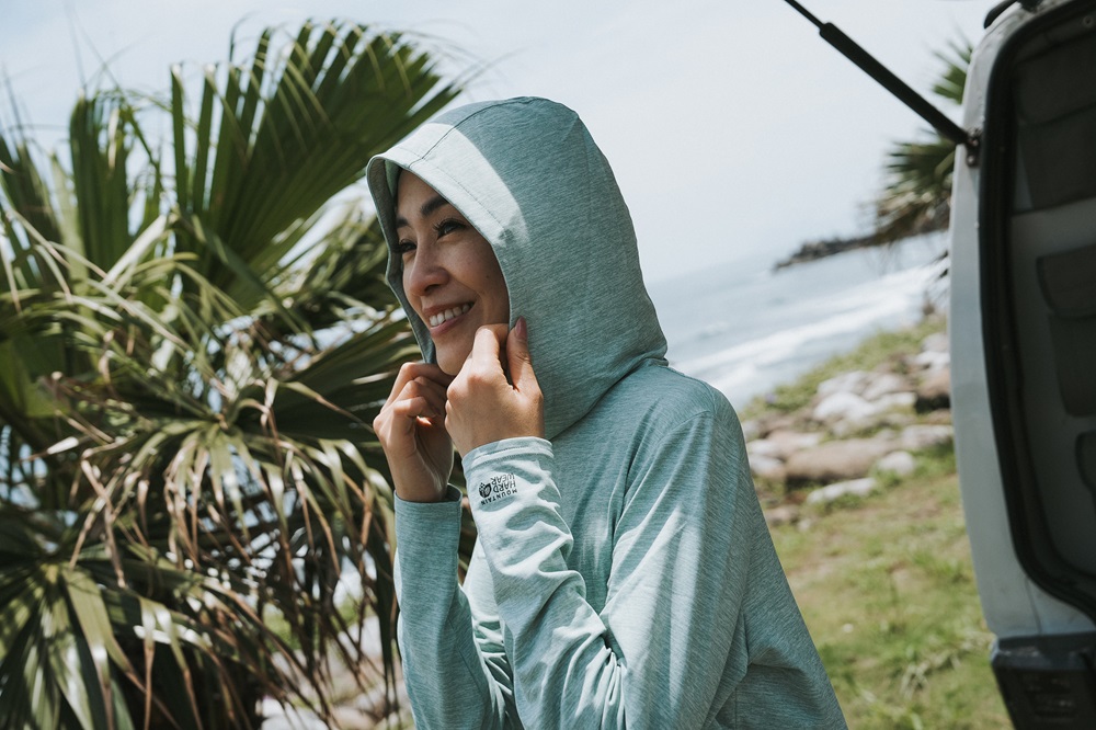 ▲Mountain Hardwear Sunblocker Long Sleeve Hoody 防曬清爽連帽長袖上衣,通過美國皮膚癌基金會認證。
