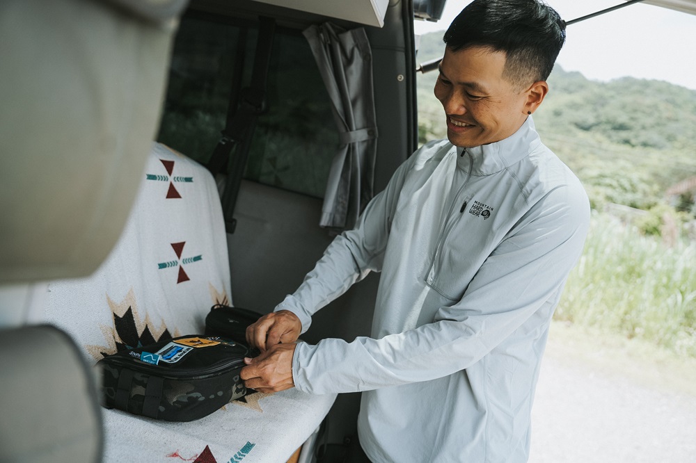 從一開始只是睡車上、衝浪後能休息,到一步步親手打造戶外生活的系統,小量驕傲地說著,讓從沒露過營的嘉嘉直接跳級,沒有經歷過自己搭帳篷的這一段必經之路,入坑就從車泊露營開始,這一露就是十年,也深信還會持續下去。