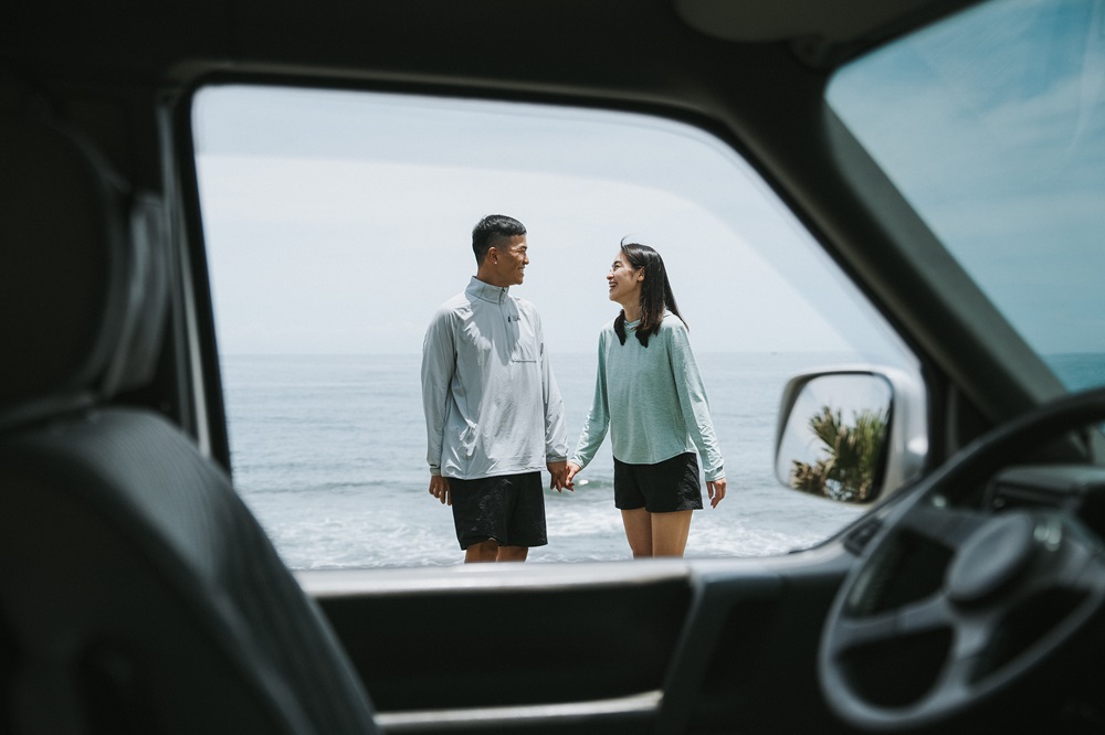 認識小量前,嘉嘉笑說自己是個標準的城市女孩,休假行程大多圍繞著咖啡廳、看電影與 KTV。交往之前,為了讓她更自在地走入戶外,小量事先做了不少功課,「如果你要一個空姐跟你去衝浪野營,還要她自己在沙灘找地方”方便”,怎麼可能追的到她!」他打趣地說,「所以我聽朋友建議,特地買了一個行動馬桶放車上,本來覺得很荒唐,結果現在我用得比嘉嘉還頻繁,推薦大家真的要買!」