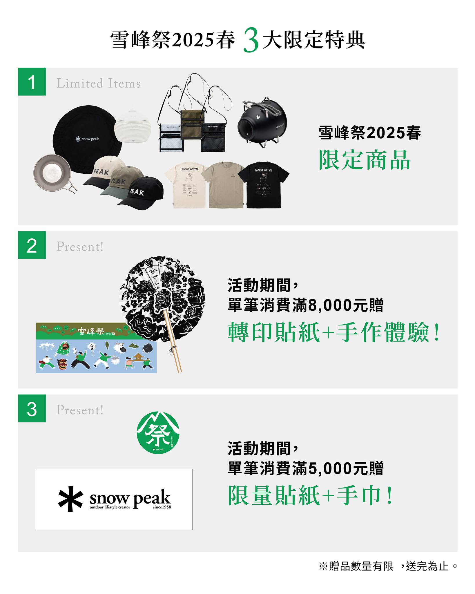 – 凡購買超過5,000元的顧客,可獲贈雪峰祭紀念品(貼紙+手巾)一套。(每人限領一套,數量有限,送完為止。)