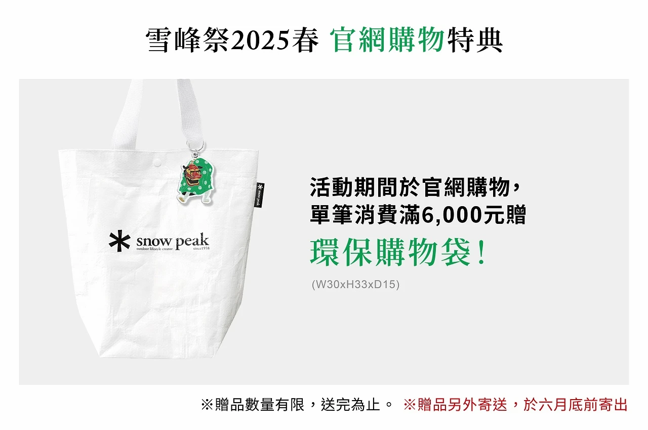 官網限定活動|凡於官網購買超過6,000元的顧客,可獲贈白雪峰購物袋。(每筆限領一個,數量有限,送完為止。)