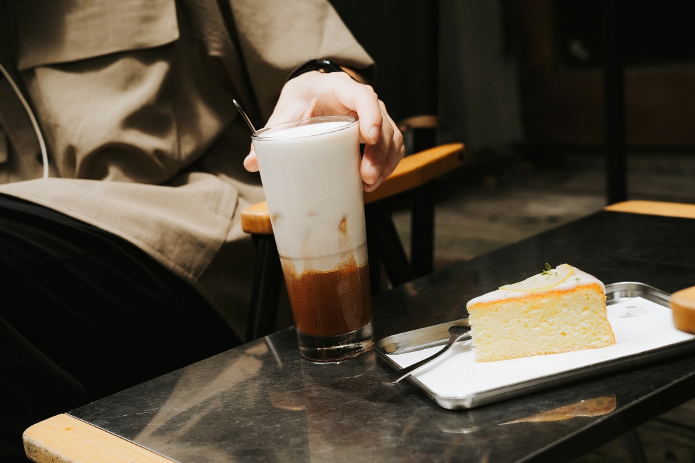 我們快速與店裡的元老級員工聊了一下,得知 Costumice Café 的咖啡豆都是自己烘焙的,而我們選的戶外露營椅座位也是許多人指定的位置。除了咖啡有名,店裡的熟食、甜點也很受歡迎,像是肉醬千層麵、烤雞腿排時蔬都是熱門餐點。甜點我們點了黃檸檬磅蛋糕,酸得恰到好處的滋味,搭配濕潤的蛋糕體,完全可以明白為何大家會喜歡這家店。