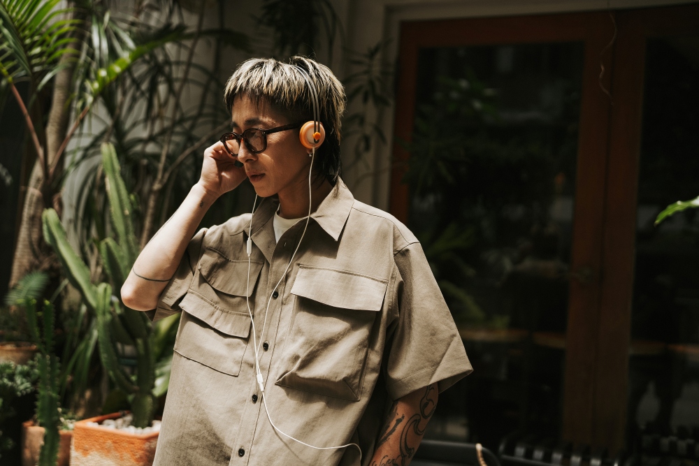 出現在我們面前的他,身穿 JUGEM DRY CARGO SHIRT,搭配同為 JUGEM 的 ALLROUND COOL 1P TROUSER,興奮地介紹身上的服飾單品:「今天天氣很悶熱,我裡面穿的是涼感的吊嘎,但只穿吊嘎太單薄,所以我外面再套上能吸濕排汗的 DRY CARGO SHIRT。看起來好像很熱,但其實吊嘎是涼感的,襯衫也很透氣又能快速排除濕氣,比單穿一件棉 T 還要涼爽。」