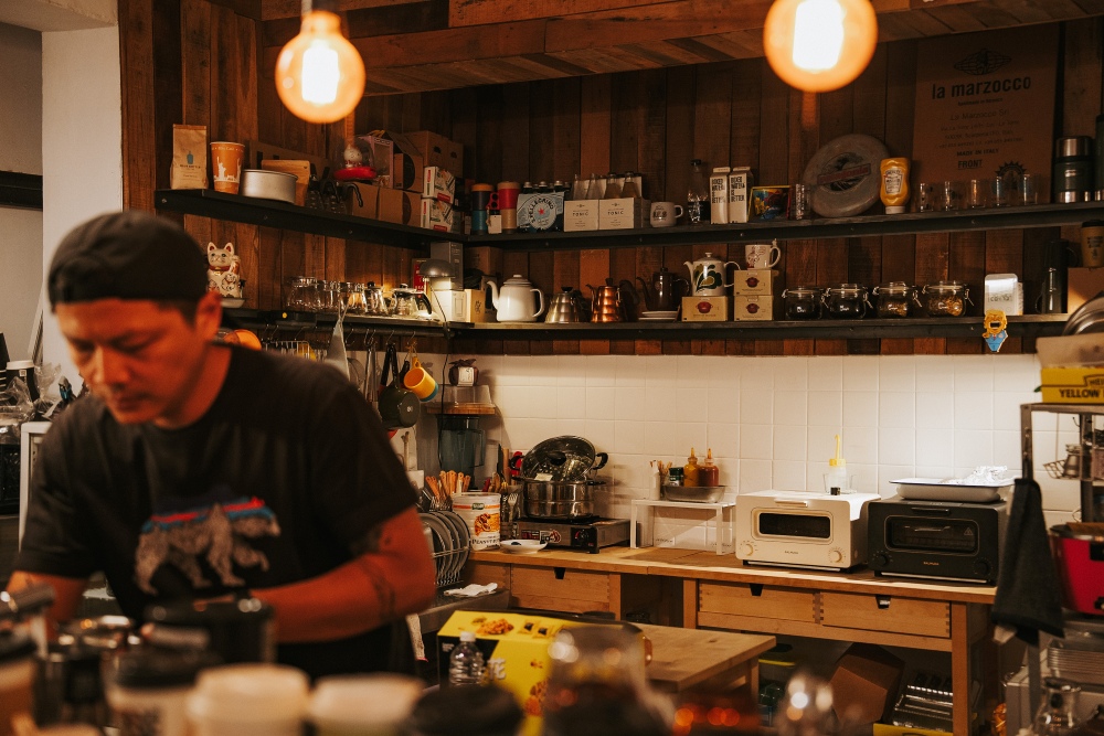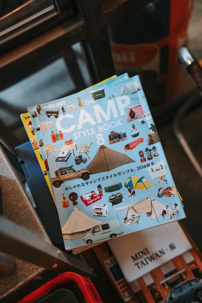 店面小小的,給人一種溫馨的感覺,就好像那種開在你家樓下,可以時不時就去跟老闆聊聊天的店。這家咖啡廳乍看好像跟露營沒什麼關係,但別急著走!魔鬼藏在細節裡,仔細看,會發現到處都有露營的痕跡。像是牆角堆放的知名露營品牌用品,還有翻不完的露營雜誌,以及充作客人坐椅的露營椅。細問之下才知道,原來老闆夫婦是露營愛好者。他們各自辭掉工作,開了這間咖啡廳,想要將自己的生活態度透過這家店與大家分享。