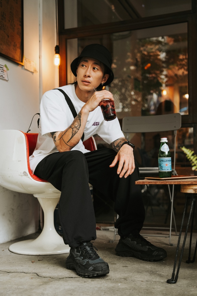 大概是在四年前接觸到機能服飾,試過就愛不釋手的他,如此說道:「我認為穿搭要與自己的生活型態緊密相連。像我常常需要練板、教課,很容易爆汗,就需要能保持乾爽的服飾。而台北又常下雨,所以也需要能防潑水的單品,這樣身體才不會又濕又黏。」