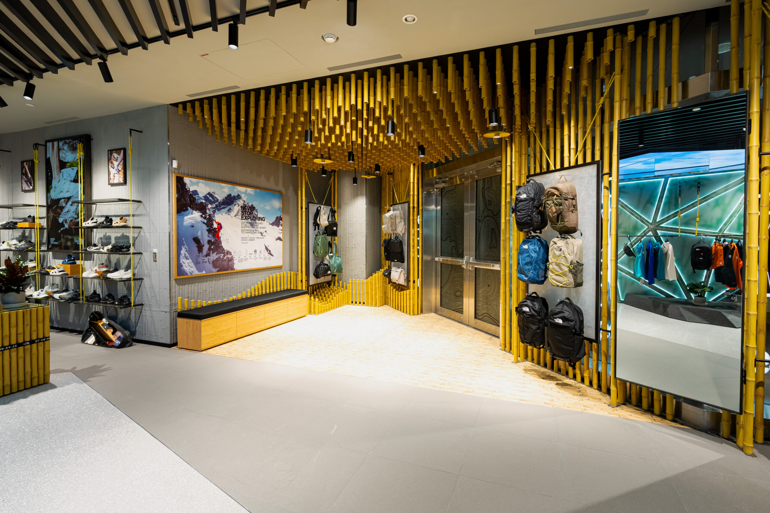 煥新後的The North Face台北101門市擴大升級,寬敞的購物空間承載著精心設計的空間元素,展現台灣獨有的自然魅力。設計靈感來自於竹、林、山、石四大自然元素,體現了品牌對台灣在地文化的尊重與回應。