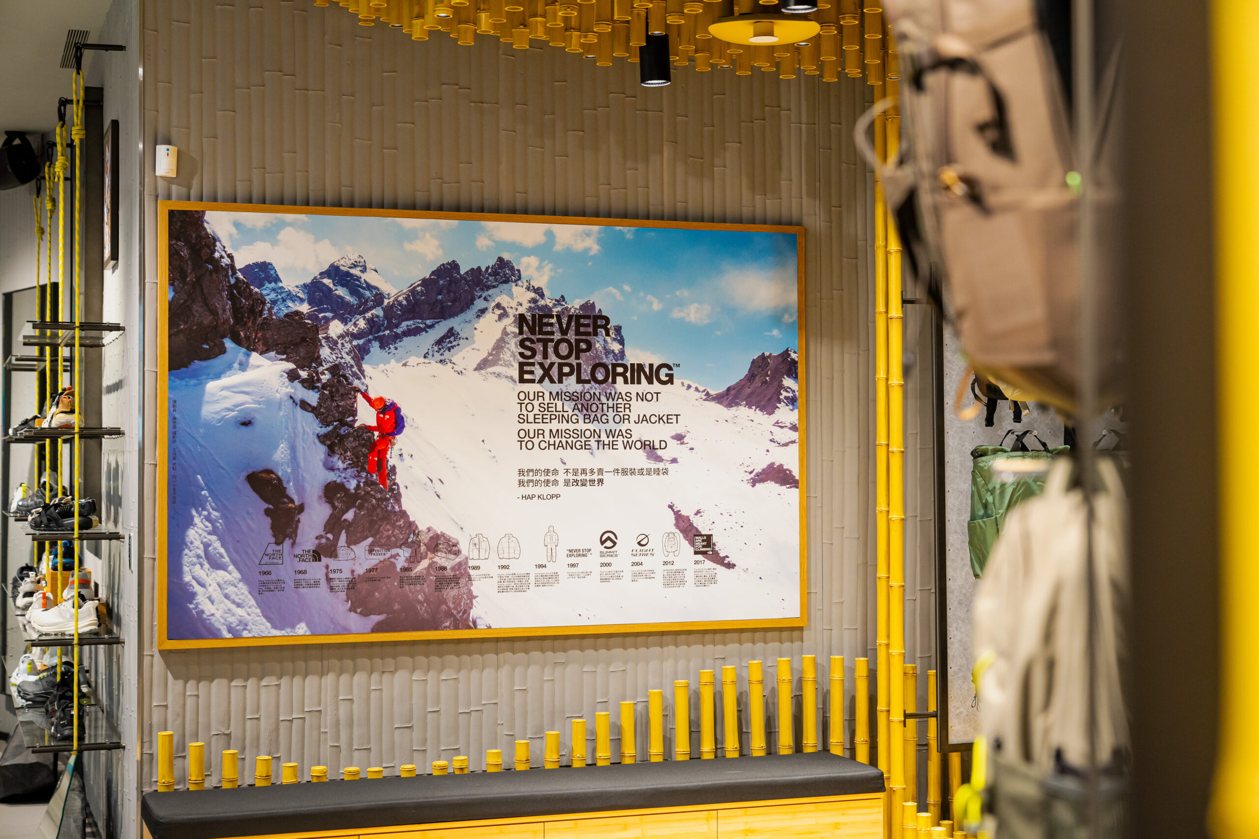 The North Face於1966年成立,一直致力於為戶外運動員的每一次嚴酷探索提供專業裝備。作為全球戶外運動領導品牌,The North Face以經過專業運動員測試、適應各類戶外需求的產品助力探索者不斷超越自我,激發人類潛能。The North Face象徵著眾多山脈中更冷、更值得挑戰的北面山壁。品牌標誌則來自Half Dome,一座位於美國加州Yosemite National Park(優勝美地國家公園)里的山峰,中文名字取為「北面」,象徵著不畏懼的戶外探索精神。1997年,The North Face採用全新的宣傳標語「Never Stop Exploring探索永不停止」,體現品牌的探索精神,成為品牌的座右銘。