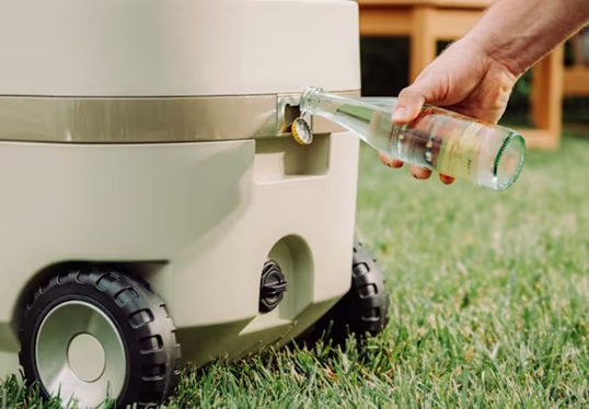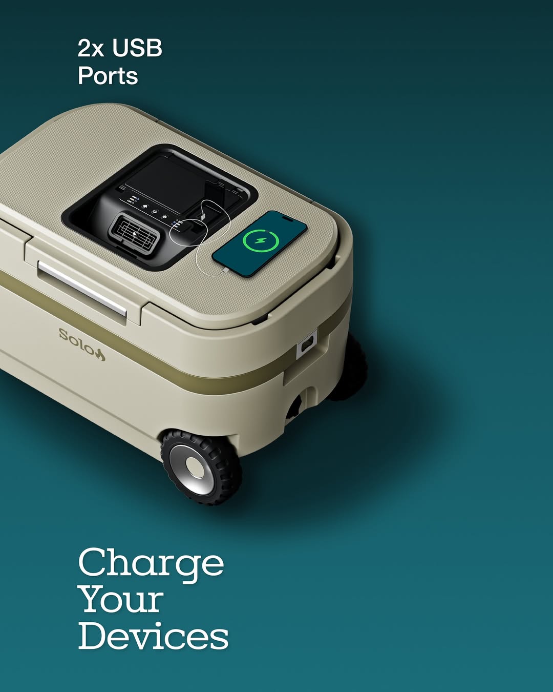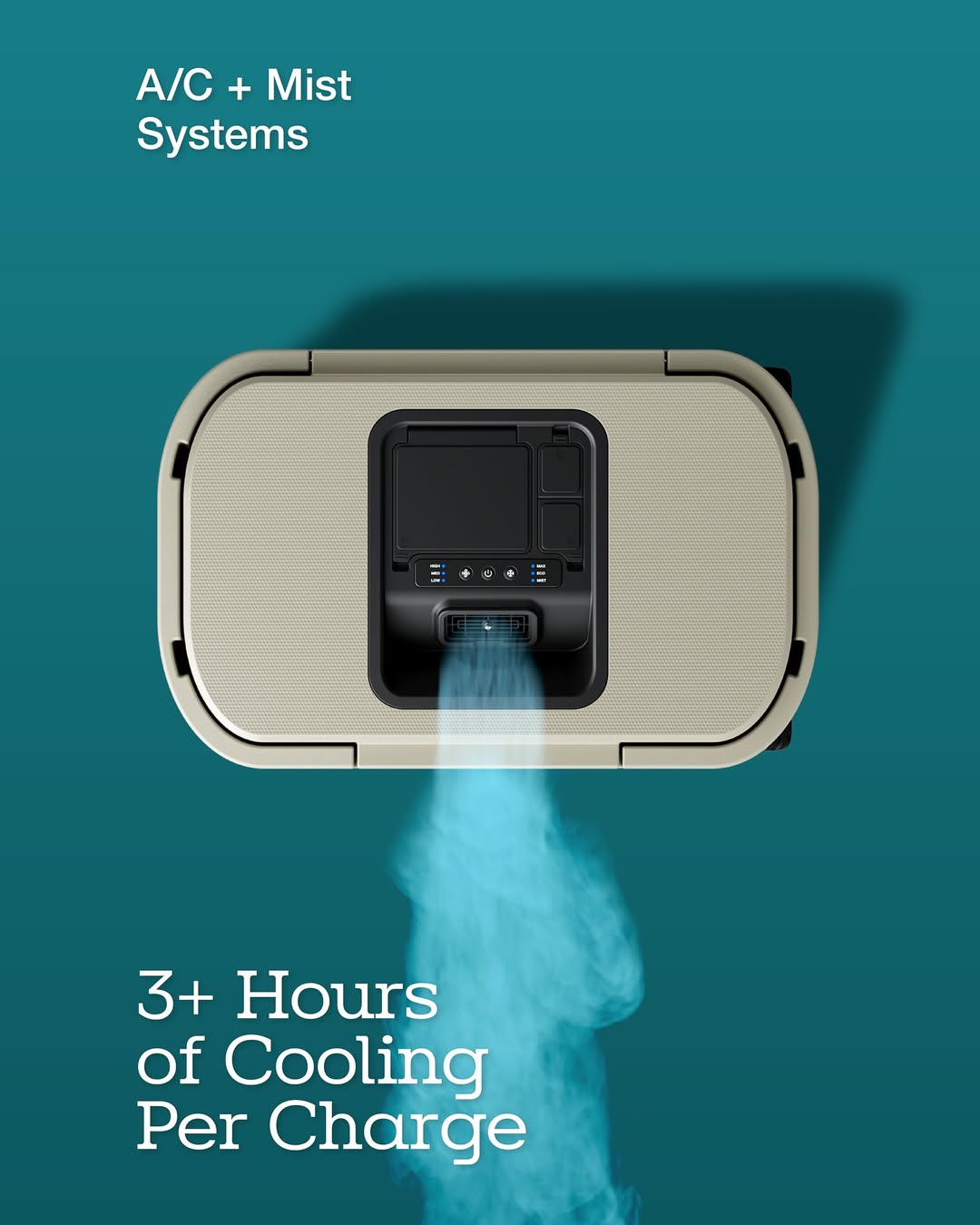 Windchill 47 Cooler + Mobile A/C 不只是一台能裝下 65 罐飲料的大容量冰箱,更是一台能「吹冷氣」的多功能移動降溫裝置。冰桶內建換熱器、高效能風扇與水泵,按下按鈕後,就能將內部冰冷空氣轉化為乾燥低溫的冷氣送出。
