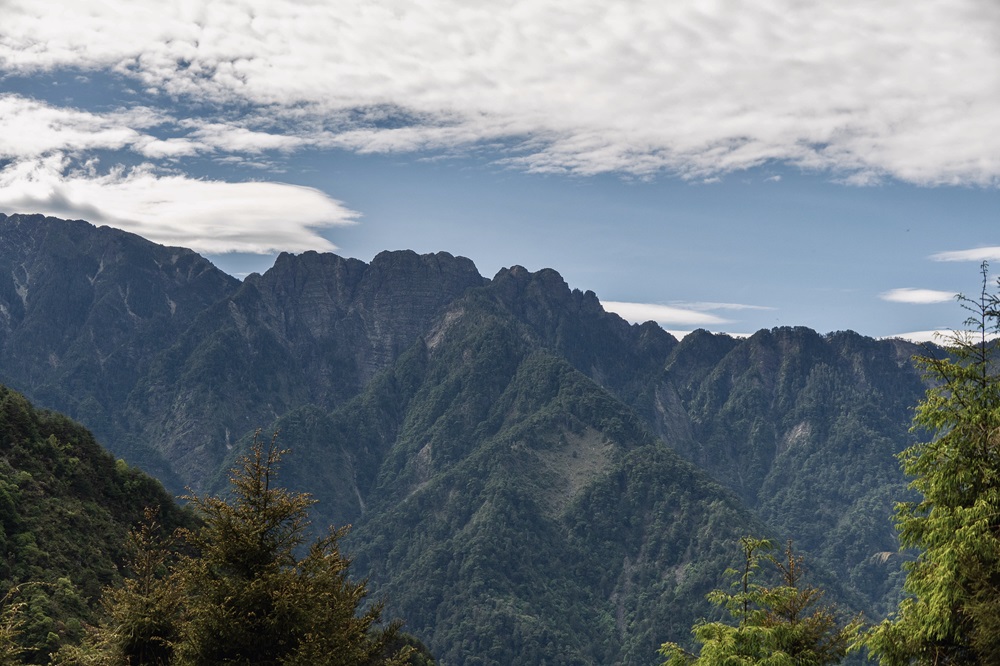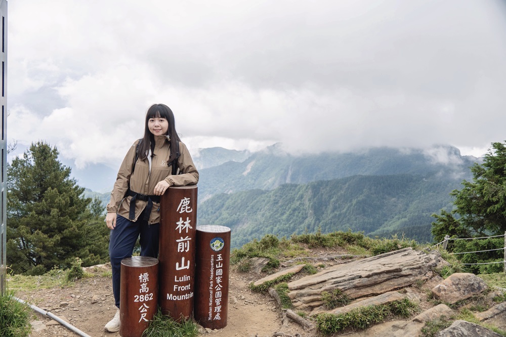 在前往第二座鹿林山時,天空已漸漸變天,雲量增多且流動快速,不時飄來一大片烏雲,早晨能看見清楚的玉山南峰稜線,接近中午已覆蓋上厚厚的白棉花雲朵。氣溫開始下降,我也把 L.I.M PF 防水外套拉上了,確實感受到防風效果顯著,手腕的鬆緊袖設計能讓風不透進來。