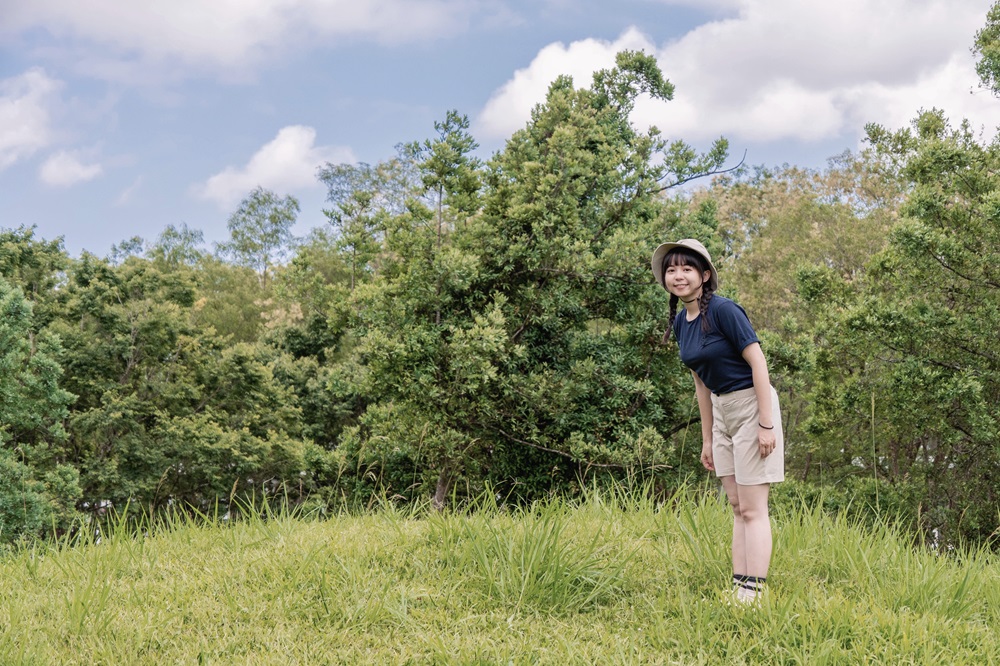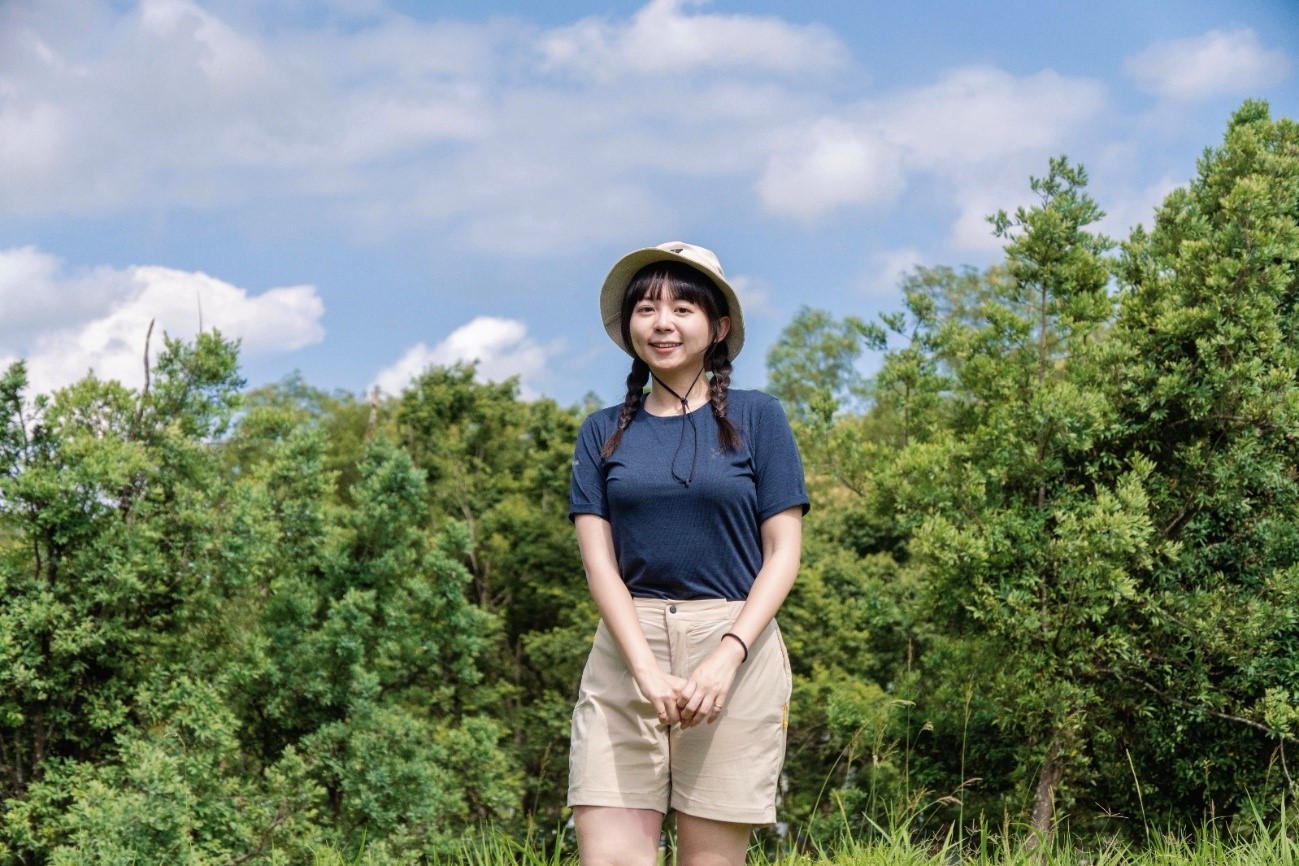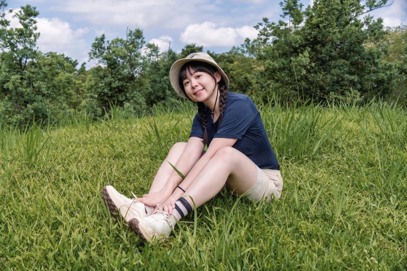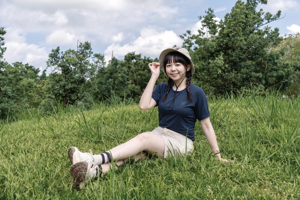 烈日當空,麟趾山三角點是曝曬路段,完全是曬黑地獄!LX Hat 遮陽漁夫帽我都戴牢牢,除了材質可以快速透氣,內建有防風抽拉繩,最意外的是,此款帽沿長度剛好,拍照時不用拿下帽子,臉部也沒有黑影,真是太棒了!