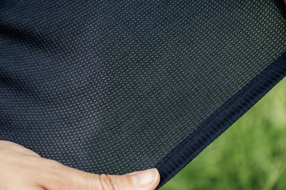 Climatic Lite 輕量質料,93% 回收尼龍,7% 彈性纖維,有 Bluesign 認證。材質不僅輕量且快乾,高延展性布料,100%回收聚酯纖維製成。