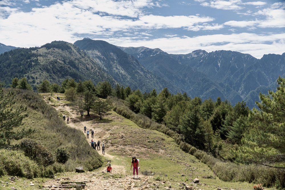 上至開闊處,可遠觀玉山群峰的山稜線,大草原與壯闊山巒的組合,完全超值。